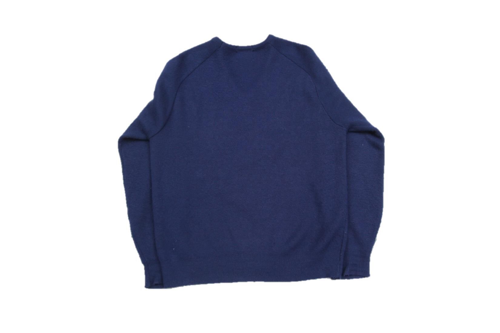 1980年代頃のSportswear製Vネックアクリルセーターとなります。恐らくスクール系セーターとなり、胸にギリシャ文字の様なアルファベットの刺繍入りとなります。シンプルかつ軽量で防寒性もありますし、サイズもL表記と多少緩めなサイズ感でカラーも合わせ易いネイビーですのでお好きな方は是非ご検討下さい。