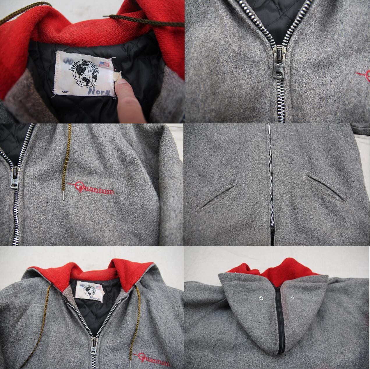 1980年代以降頃のLeader Sportswear製のフード付きスタジアムジャンパーとなります。フロントはジッパー仕様でフード部分にもジッパーが付き開けるとセーラー衿タイプにもなる仕様となります。胸に刺繍入りで袖はライン入りのリブ付きとなります。フロントジッパーはデカタロン製で左右ポケット付きです。希少なUSA製でライナーはキルティング縫製なので防寒性もきちんとございます。サイズはL表記の多少大き目サイズですのでお好きな方は是非ご検討下さい。