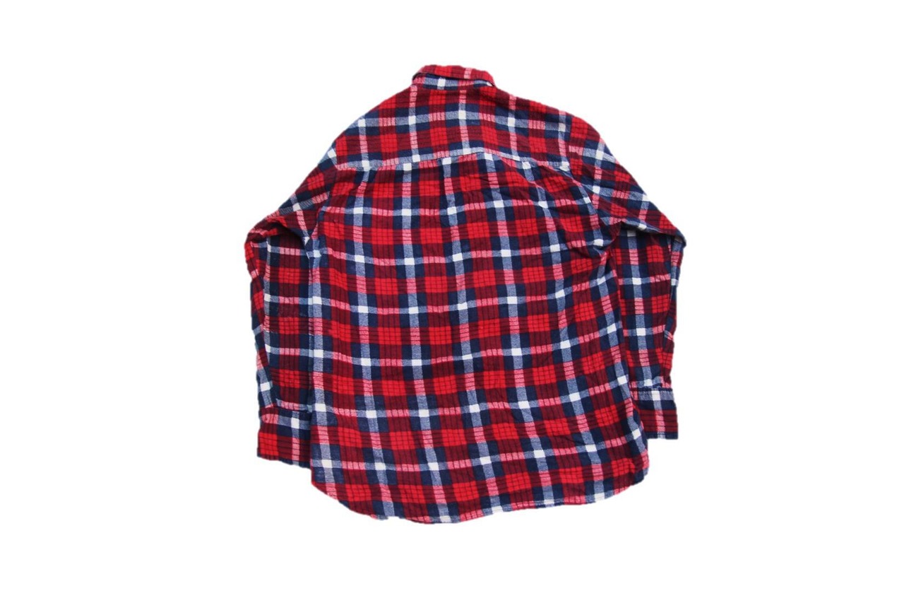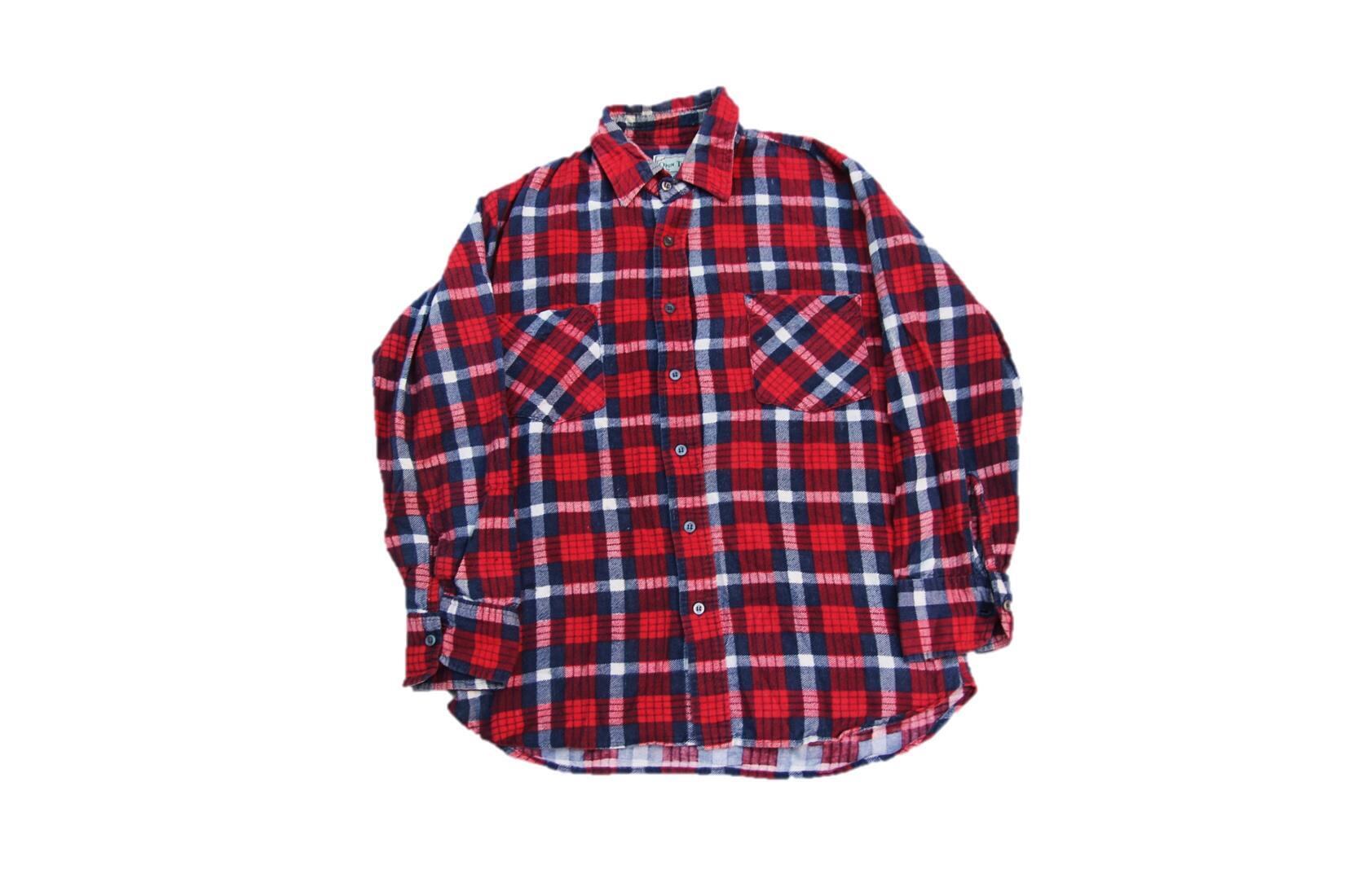 1980年代以降頃のOpen Trail製フランネルシャツとなります。ライトプリントネルとなり、チェック柄は赤黒ベースで左右胸ポケット付き、裾はラウンド型となります。サイズ表記はLですが生地の縮みの為か実寸より小さ目なサイズ感でMの大き目程度かと思われます。よく見掛けるブランドは勿論、この手のマイナー系ブランドのオールドネルシャツも大分価値が上がって来ておりますのでお探しの方は是非ご検討下さい。