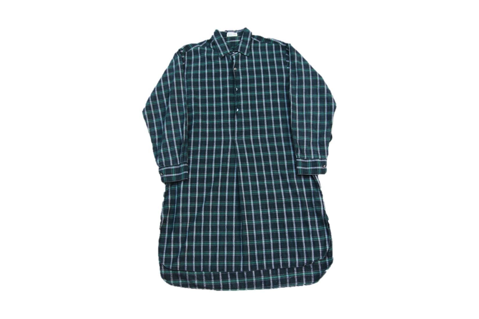 1970年代頃のブランド不明チェック柄グランパシャツとなります。ハーフボタンでプルオーバー型のロング丈で前と後ろの身丈が異なる作りがグランパシャツと呼ばれるデザインですが、こちらも定番のグランパシャツで配色の良いチェック柄、そこまで厚手では無いコットン地、裾脇部分には街付きのヴィンテージディテールとなります。タグ表記からユーロ製でサイズ表記は見当たりませんが実寸で40程度かと思われます。1枚でも様になりますし、レイヤードしても楽しくお洒落に着こなせるグランパシャツですので1段上のお洒落にチェレンジされたい方は是非ご検討下さい。