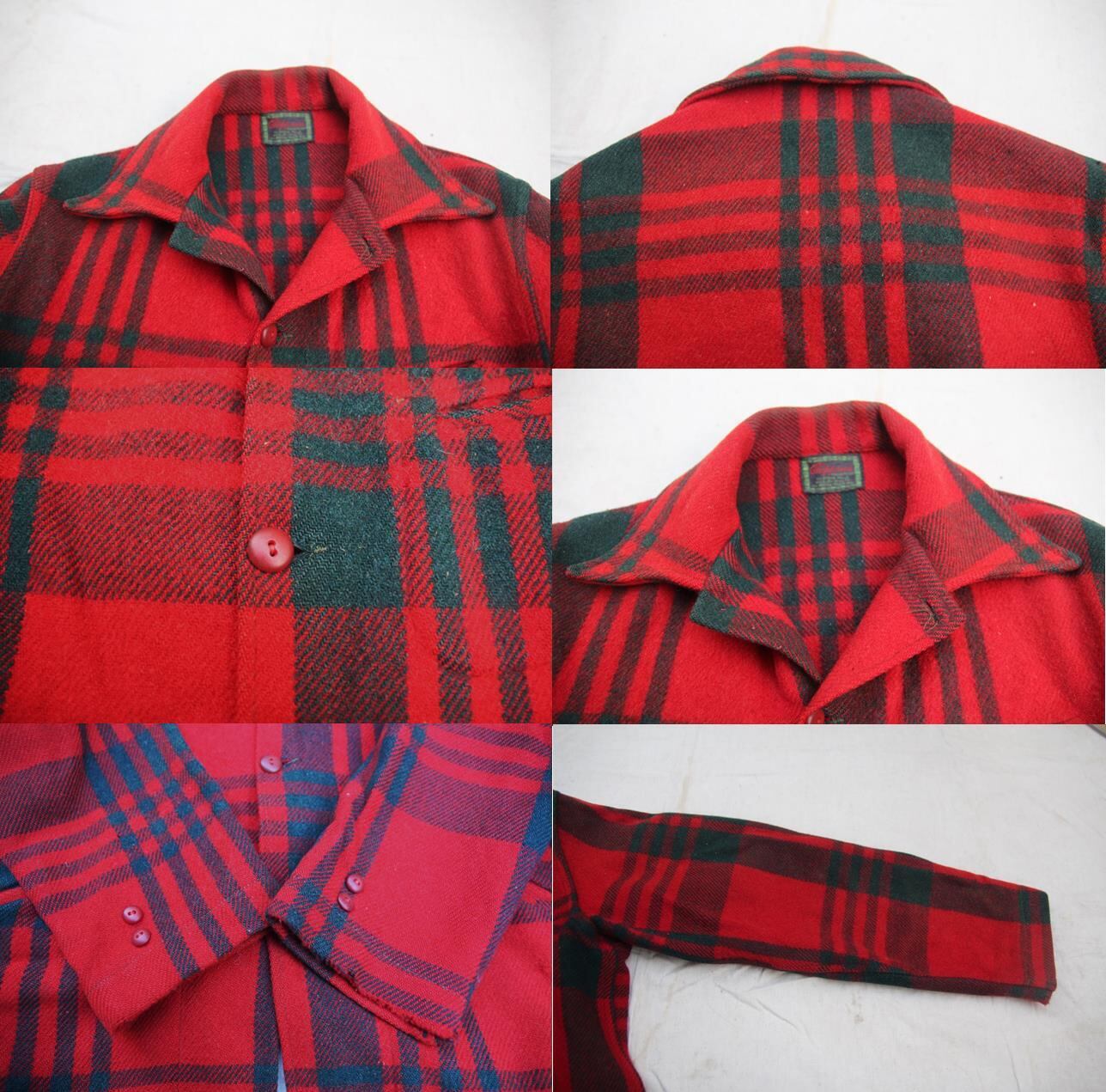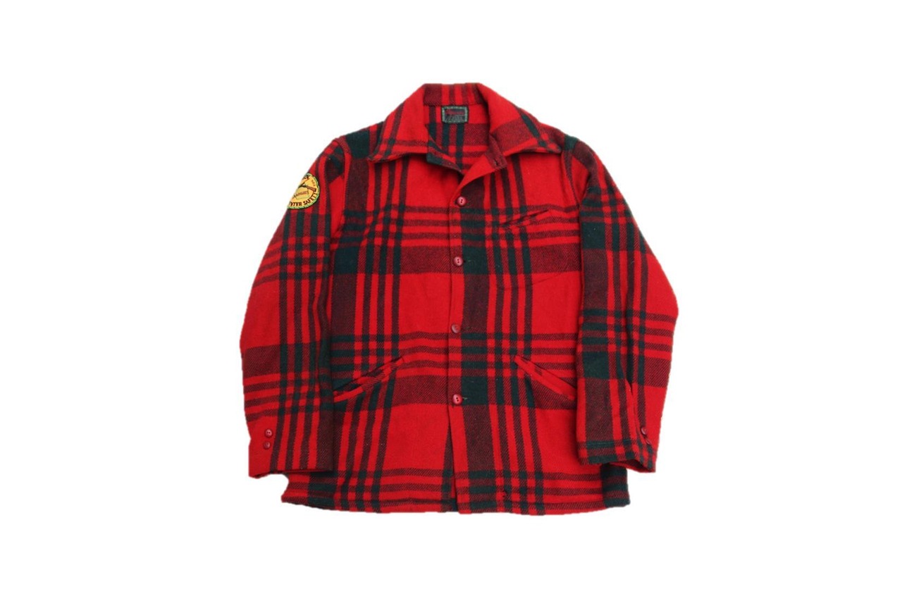 1950年代頃のChippewa製ウールジャケットとなります。ボタン留めとなるこちらは左片胸、左右ハンドポケット付きで全てのポケット縁がスラッシュ型となるスポーツジャケットタイプとなります。右袖にワッペンが付き、内容から恐らくハンティングジャケットとして使用されていた物かと思います。赤ベースのチェック柄パターンで袖にはカフス無し、首裏には黒刺繍タグが付きます。ライナーの付かない1枚地でサイズ実寸は38程度かと思われます。ヴィンテージらしいがっちりとしたウール地が使われておりますし、シルエットも大変綺麗なのでお好きな方は是非ご検討下さい。