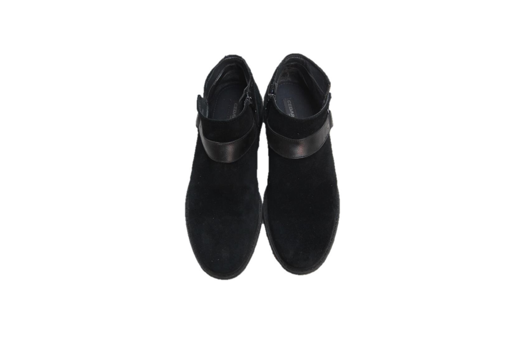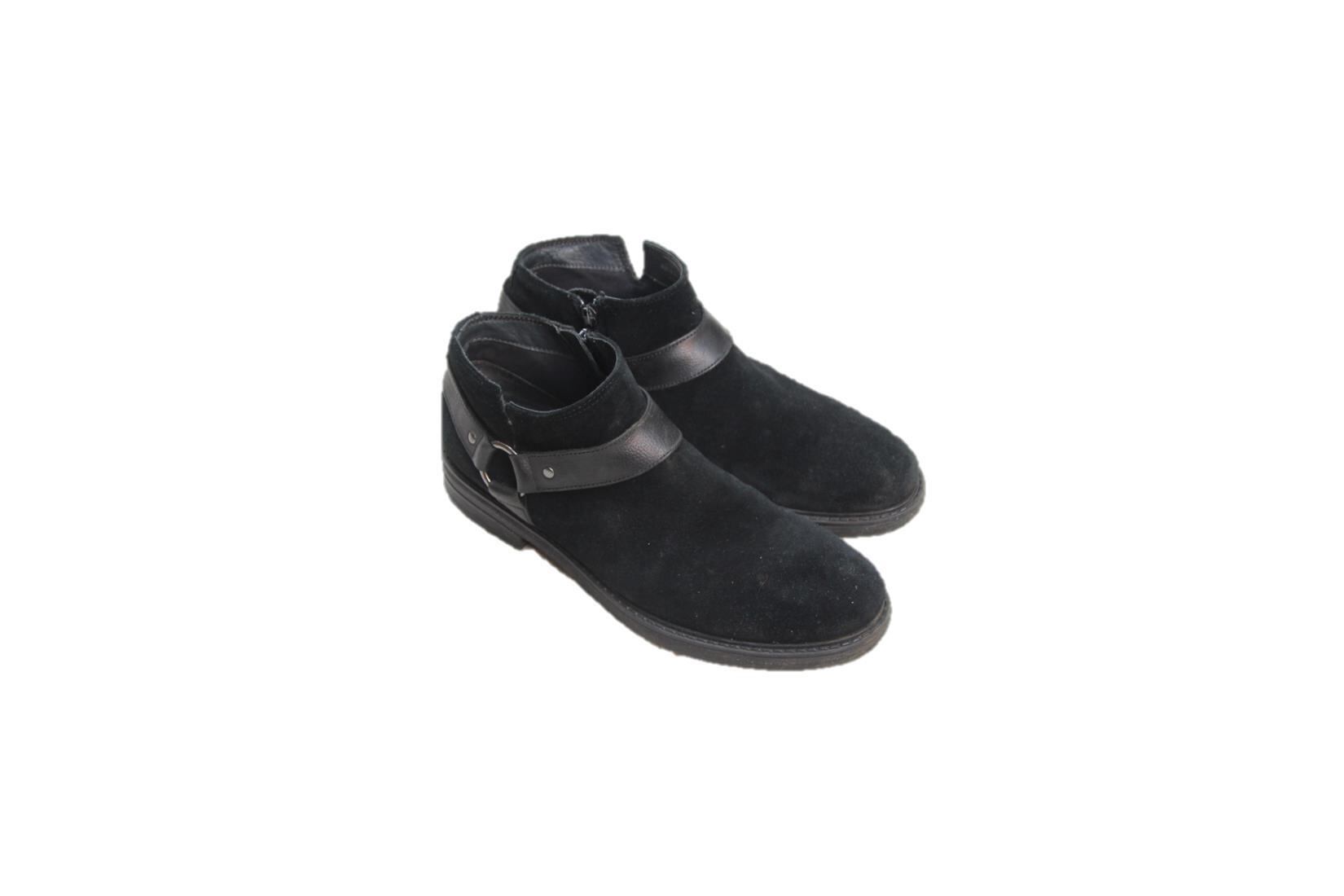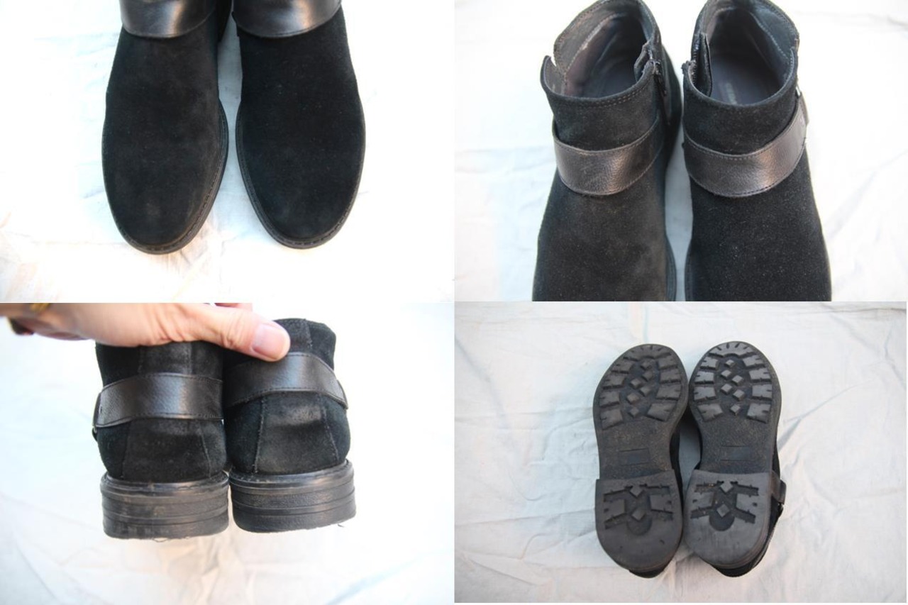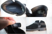Cedar Crest製のスエードレザーショートリングブーツとなります。1925年にアメリカテネシー州にて設立されたワークシューズブランドで元はワークシューズメインでしたが現在はビジネスシューズやスニーカー、パンプス等幅広く生産を広げております。こちらは黒スエードレザーベースでリングベルト付き、履き口にはスリットが入る穿き易さも考慮されております。サイズ表記が8Hなのですが、明らかに表記サイズより実寸は大き目となり、普段9H程度のサイズ感を履かれている方でも問題無いサイズ感になるかと思います。あまりボテッとしたフォルム過ぎずシャープ過ぎる形でも無いので程良いシルエット、フォルムで履いて頂けます。黒のハイト低めなスエードブーツをお探しの方、サイズの合う方は是非ご検討下さい。