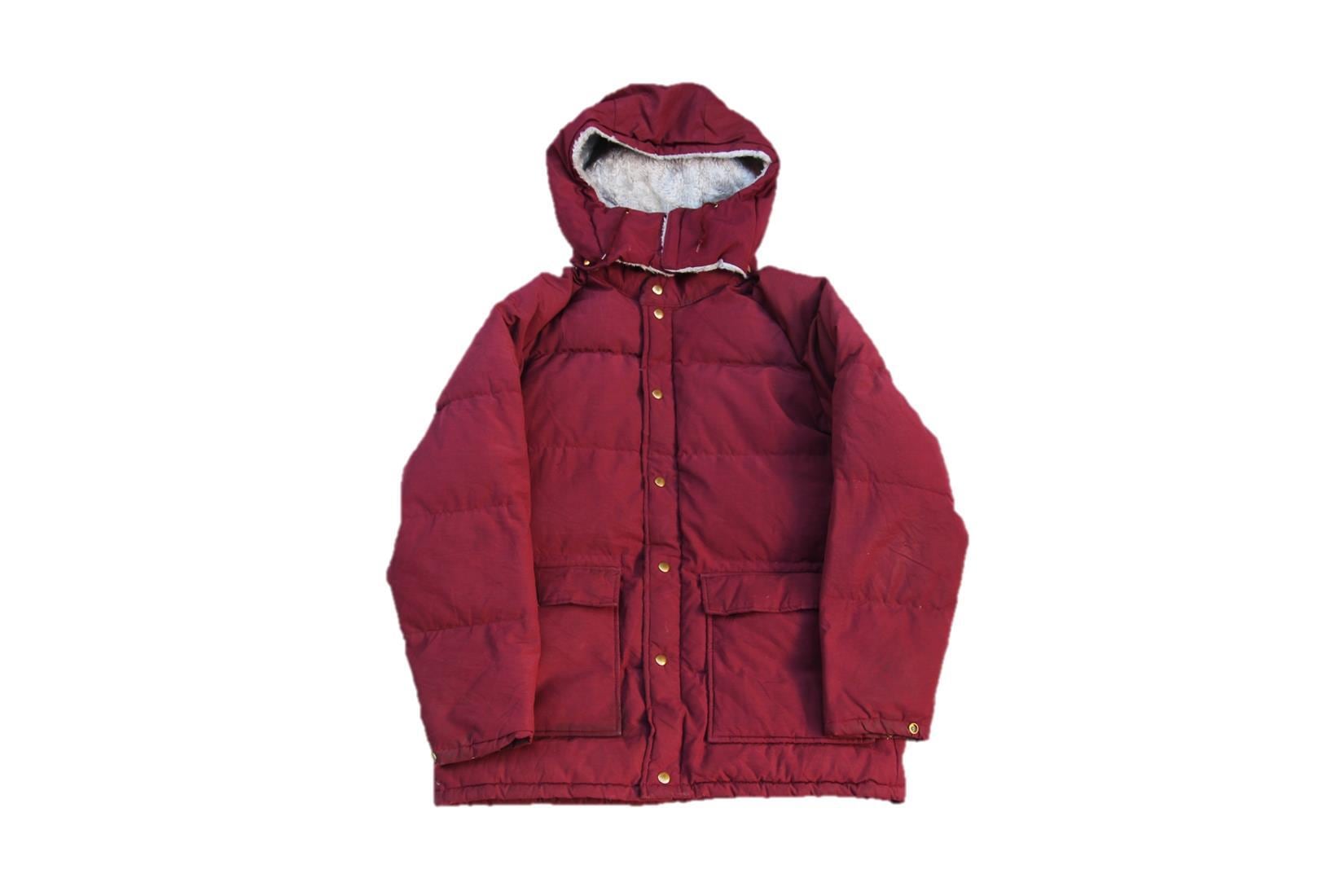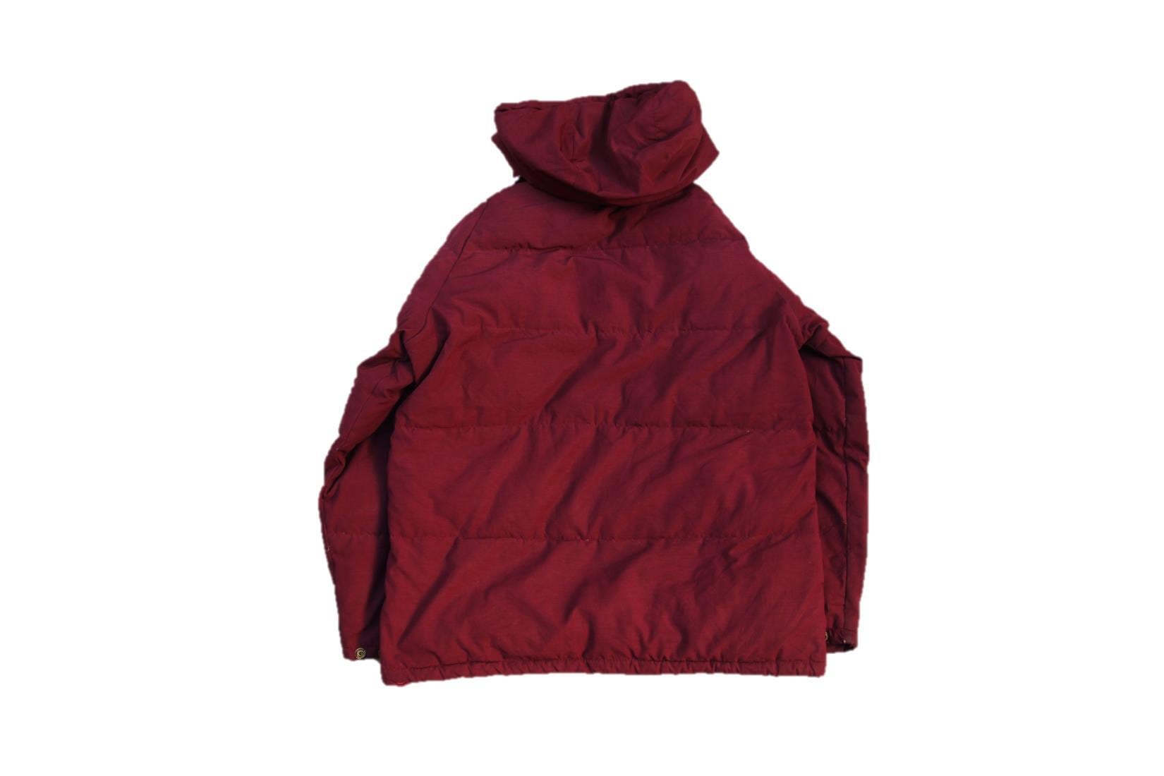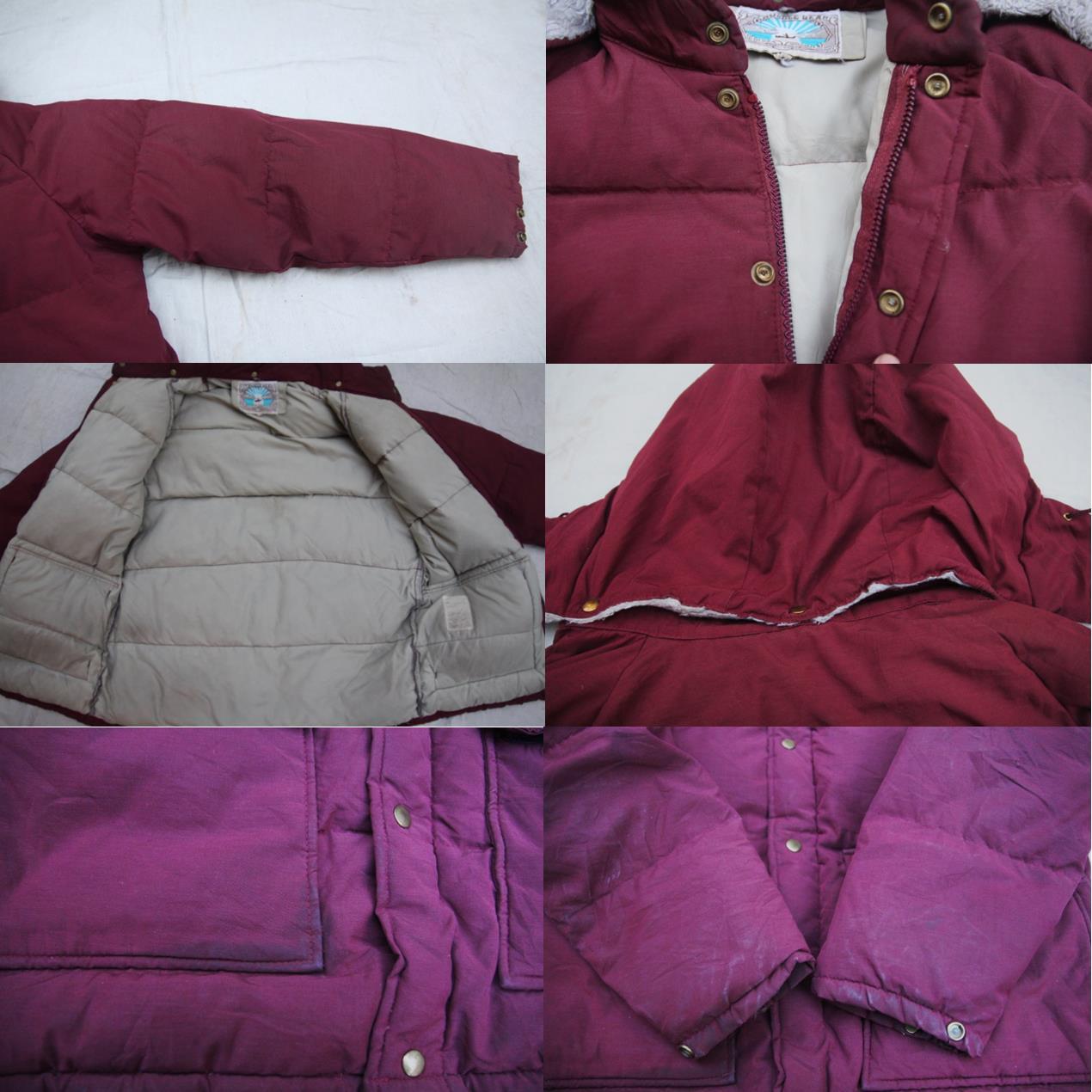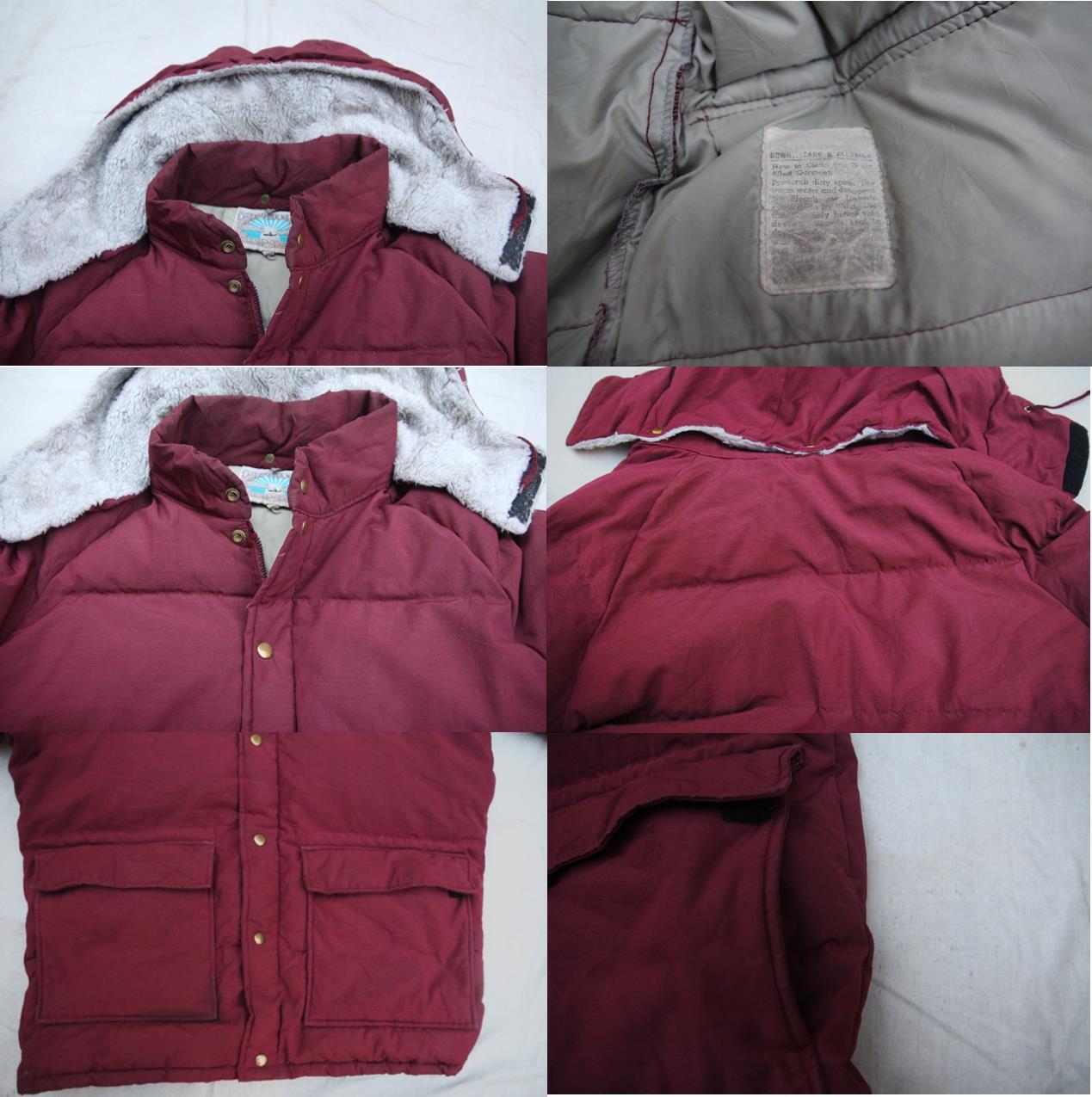 1980年代頃のWilliam Barry製のコットンナイロンダウンジャケットとなります。スナップボタンで取り外し可能なフード付きで裏がボア張り、フロントはスナップボタンとジッパーの2重留めでジッパーはタロンのWジッパー使用です。濃いめのボルドー職でライナーはベージュとなります。希少なUSA製で現行人気ブランド等に比べればスペックは劣るかもしれませんが、オールドダウンの雰囲気、良さが見られます。タウンユース使いでは問題無い位の防寒性ですのでお好きな方は是非ご検討下さい。