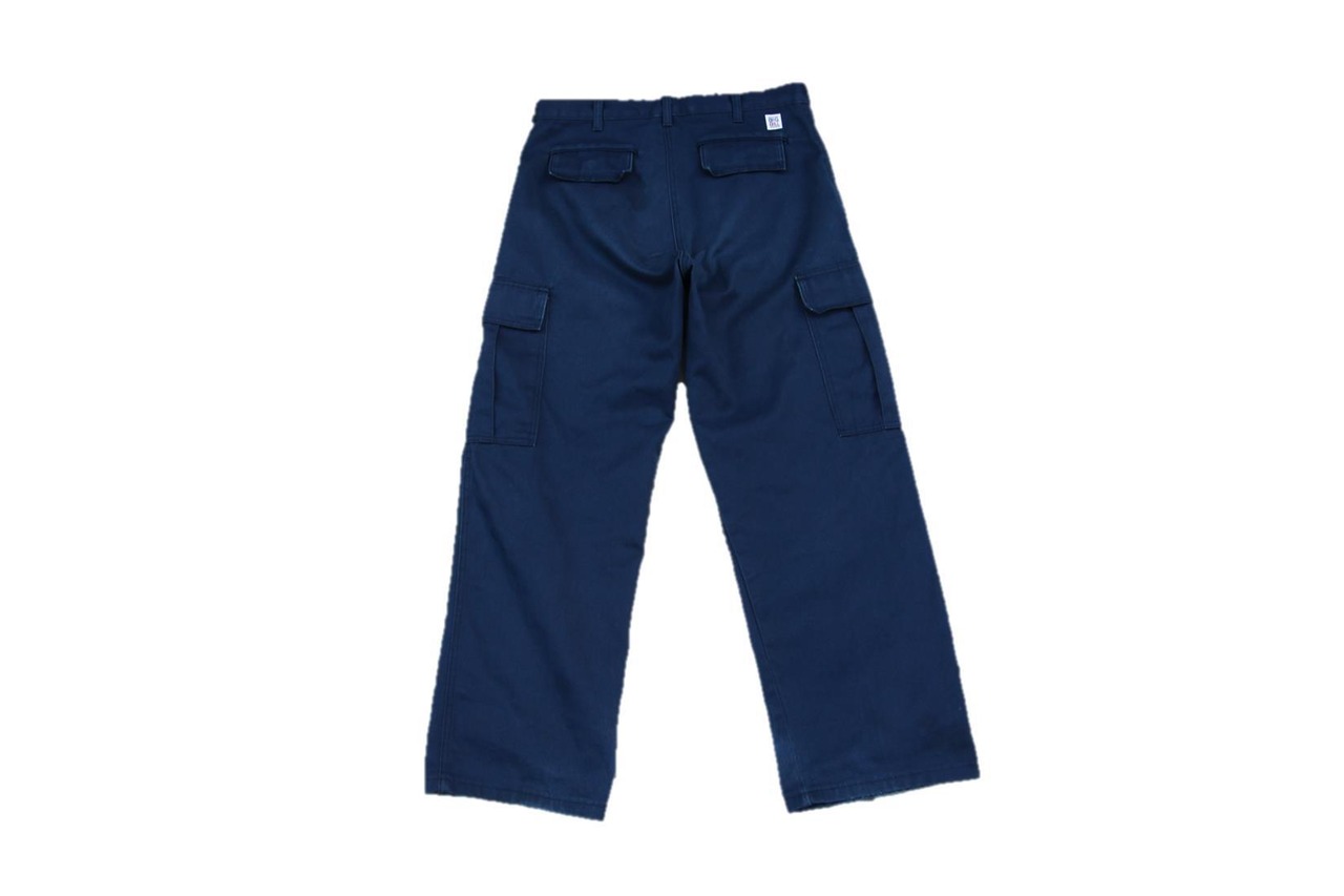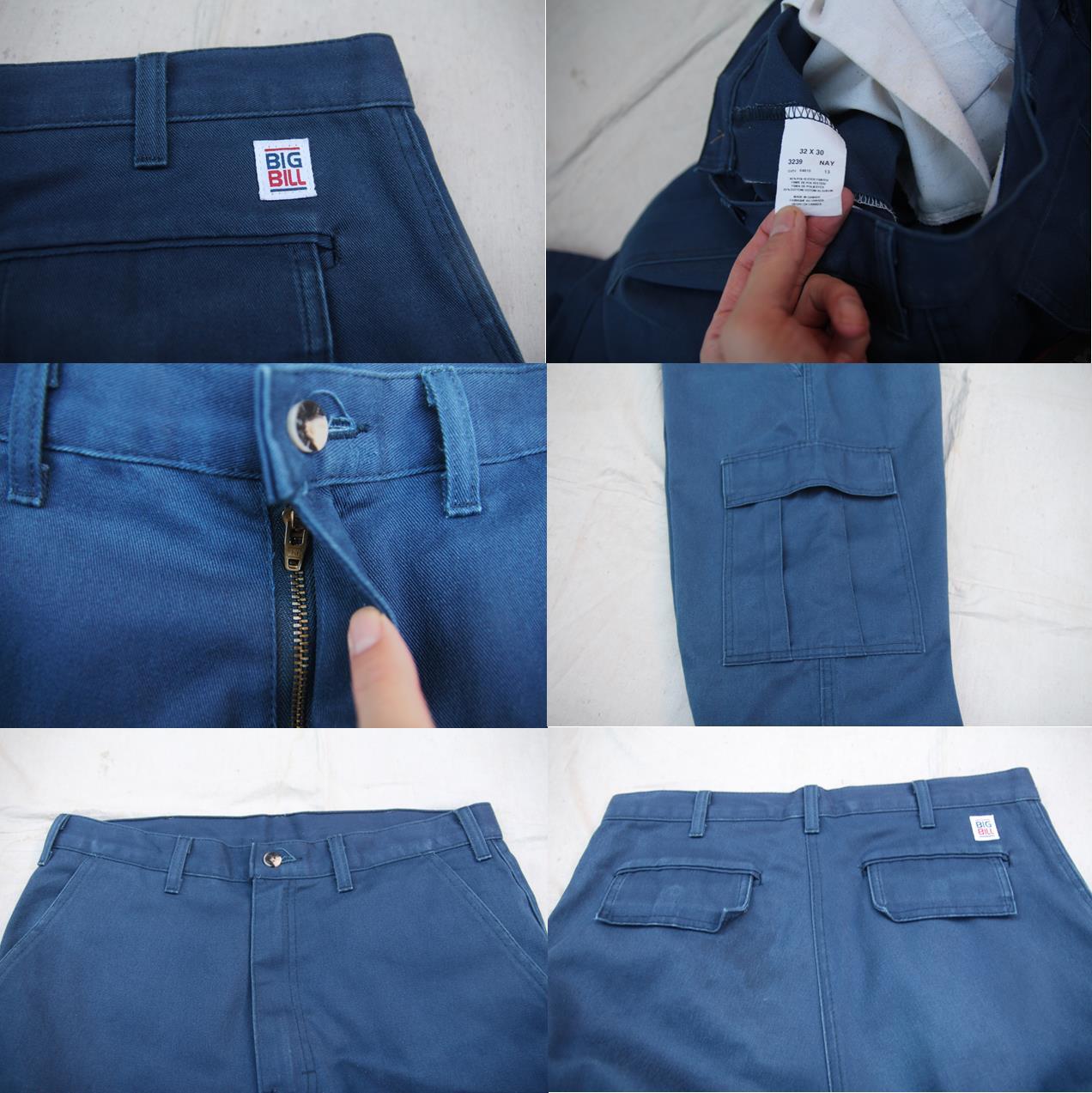 Bigbill製のカーゴワークパンツとなります。カナダ発のワークウェアブランドであまりメジャーなブランドでは無いもののシンプルで無骨な物作りでファンも多いブランドです。こちらはカーゴポケットが付く6Pタイプのワークパンツで、適度に緩めなシルエットにコットンとポリエスターの混紡素材となります。ミリタリーパンツとはまた違ったワークパンツらしいシルエットも大変良いかと思います。お色も合わせ易いネイビーですので使い回しが効きますし、サイズも表記は32ですが実寸で33程度と大変良いサイズ感ですのでこの手のパンツをお探しの方は是非ご検討下さい。