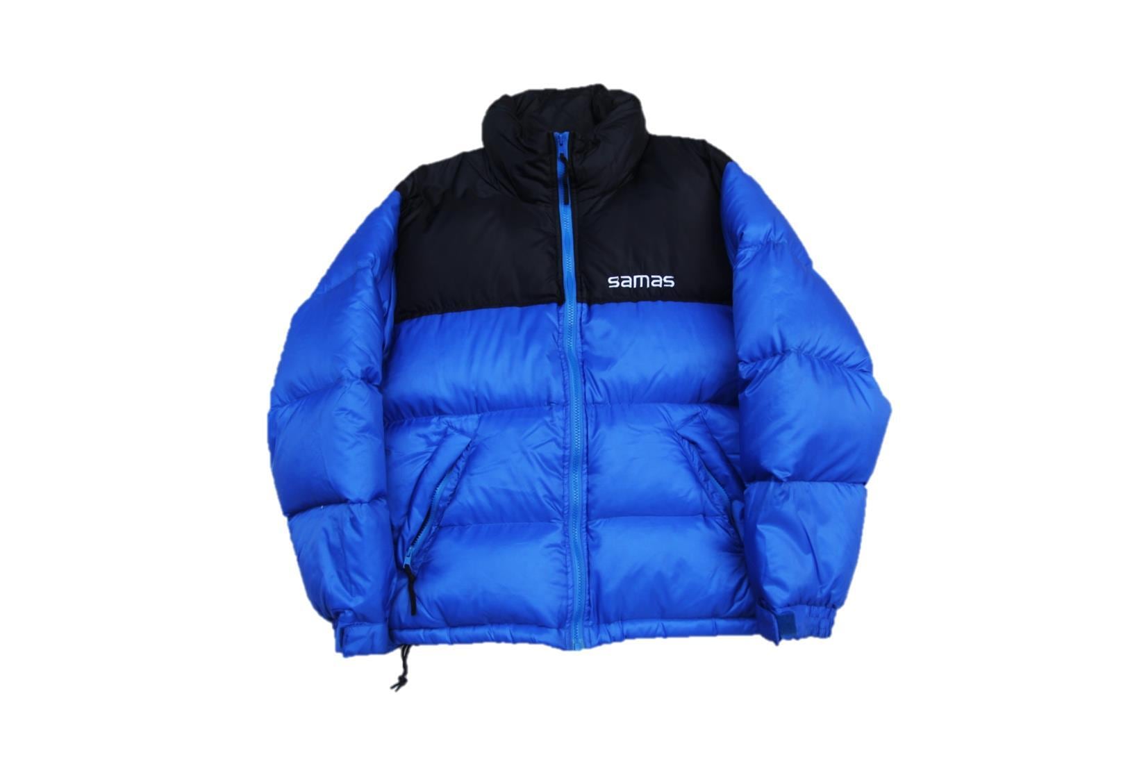 Samas製のナイロンダウンジャケットとなります。1959年にイタリア最北部にあるスイスとの国境の街ヴァルテリナ発祥のアウトドアブランドで過去にスキーチームのスポンサーに付いた事もある作りには信頼性のあるブランドです。こちらは人気の2トーン切り替えで胸にブランド刺繍が入ります。両裾部分にドローコードも付きますので絞って着用も可能です。素材はシャイニーナイロンで軽量かつ防寒性も高いですし、サイズはMとなりジャスト少し大き目サイズがお好きな方には大変お勧めです。是非ご検討下さい。