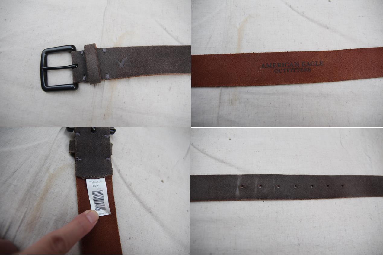 American Eagle製のスエードレザーベルトとなります。アメリカピッツバーグに本社を置く1977年創業のアメリカンカジュアルブランドです。グレーのスエードレザー素材でバックル脇にブランドアイコン刻印入り、裏側にブランド表記刻印も入ります。サイズ表記は36となります。普段使いやカジュアルにもお使い頂けるベルトですので是非ご検討下さい。