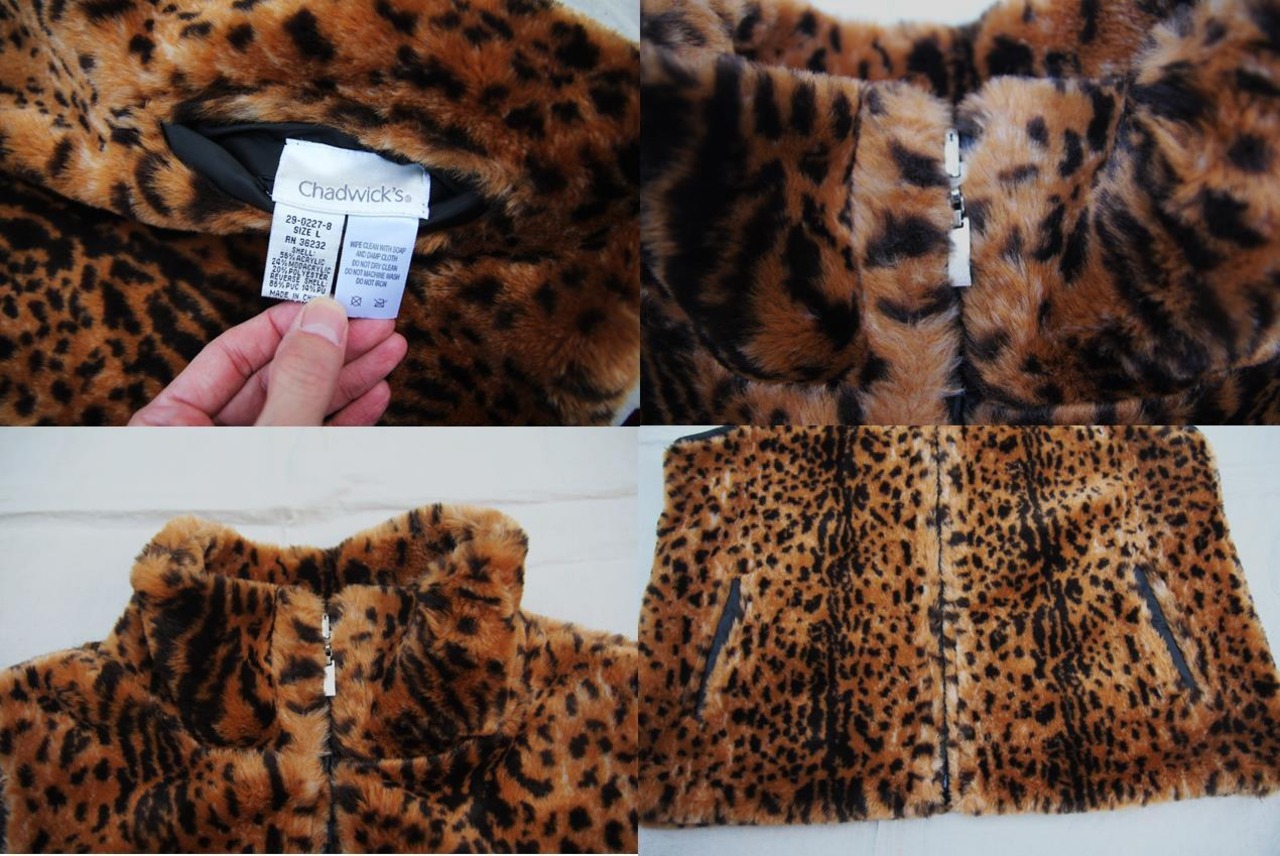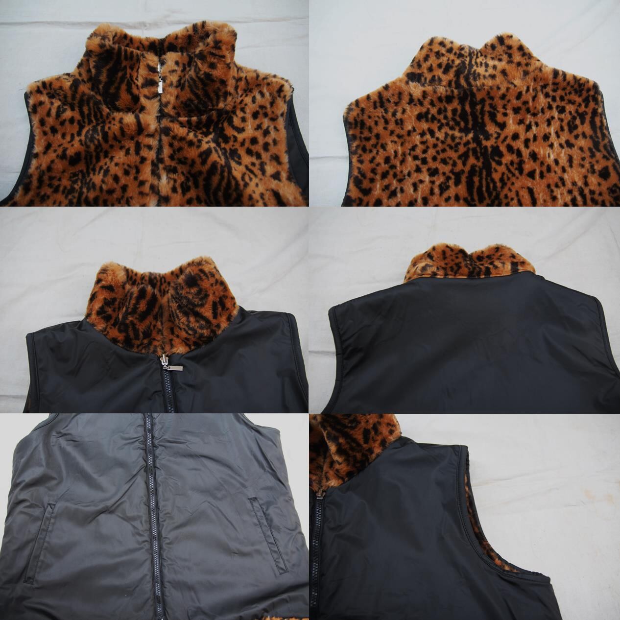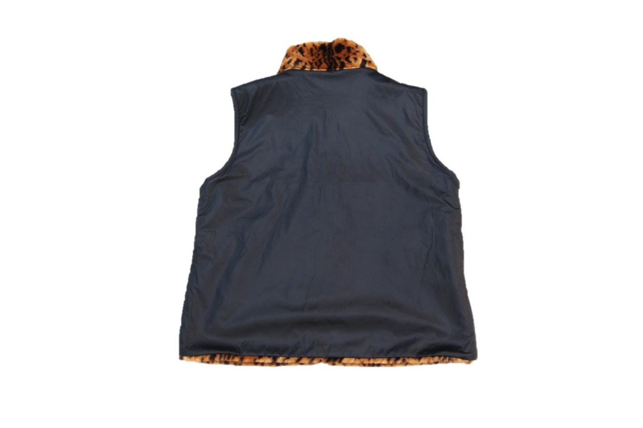 2000年以降のChadwicks製リバーシブルベストとなります。アクリルファーとポリエスター素材のリバーシブル仕様でファーがレオパード柄とインパクト大でお探しの方も多いかと思います。両面共にポケット付きで襟元も高めなので最上部まで閉めて頂ければ防寒性も高く着用頂けます。レオパードのアイテムはレディースブランド等中心でサイズの小さいアイテムが多い中こちらは緩めなメンズLなのでインナーに厚手のアイテムも着込めるのもポイントです。お好きな方は是非ご検討下さい。
