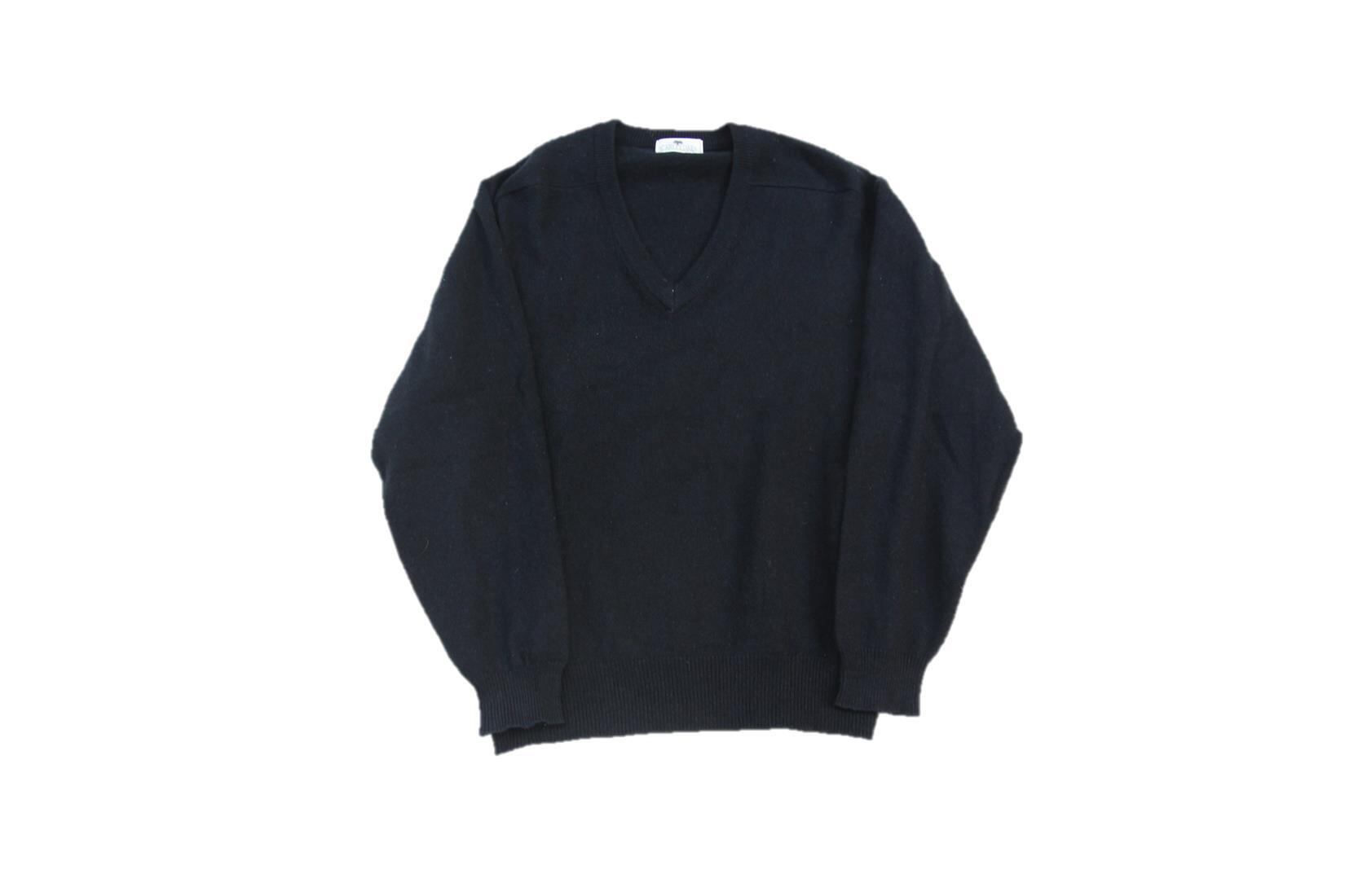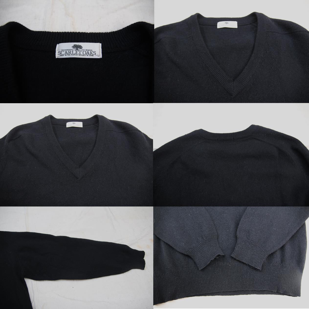 Scarletoaks製のウールVネックセーターとなります。人気のブラック単色であまり深すぎないVネックですのでインナーにシャツ等がレイヤードし易いセーターです。サイズはLですが、多少タイト目なサイズ感ですのであまり大き過ぎないシルエットのセーターをお探しで万能な単色黒がお好きな方は是非ご検討下さい。