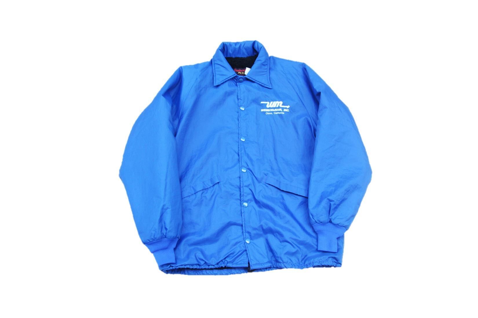 1980年代頃のDun Brooke製のナイロンコーチジャケットとなります。発色の良いブルーカラーにアクリルボアのライナー付きで胸にカリフルニア州Chicoにある企業のWeiss Mcnair社の胸プリントが入る事から企業内の作業着等として使われていたジャケットでしょうか。ストリート、バイカー、スケートファッションを始めとして大変人気のあるナイロンコーチジャケットですが、希少なUSA製でライナー付きな点も嬉しいポイントかと思います。サイズもLと人気サイズですのでお探しの方は是非ご検討下さい。