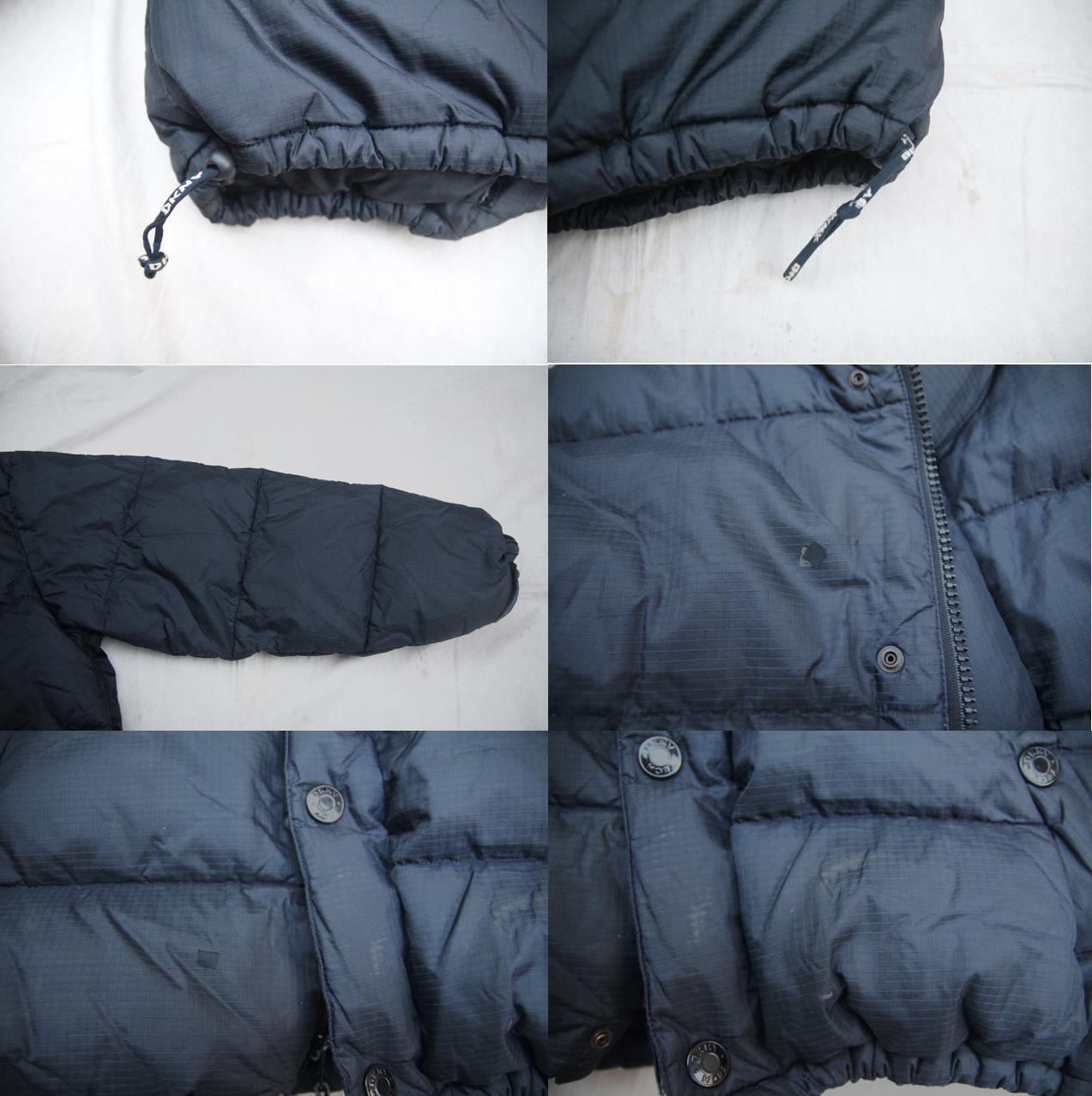 左袖リフレクター一部剥がれ有り、フロント胸部分、裾部分に補修テープ貼り有り、ポケット脇付近に擦れ汚れ有り、全体的に多少のダウン抜け、生地擦れ、使用感が見られます。