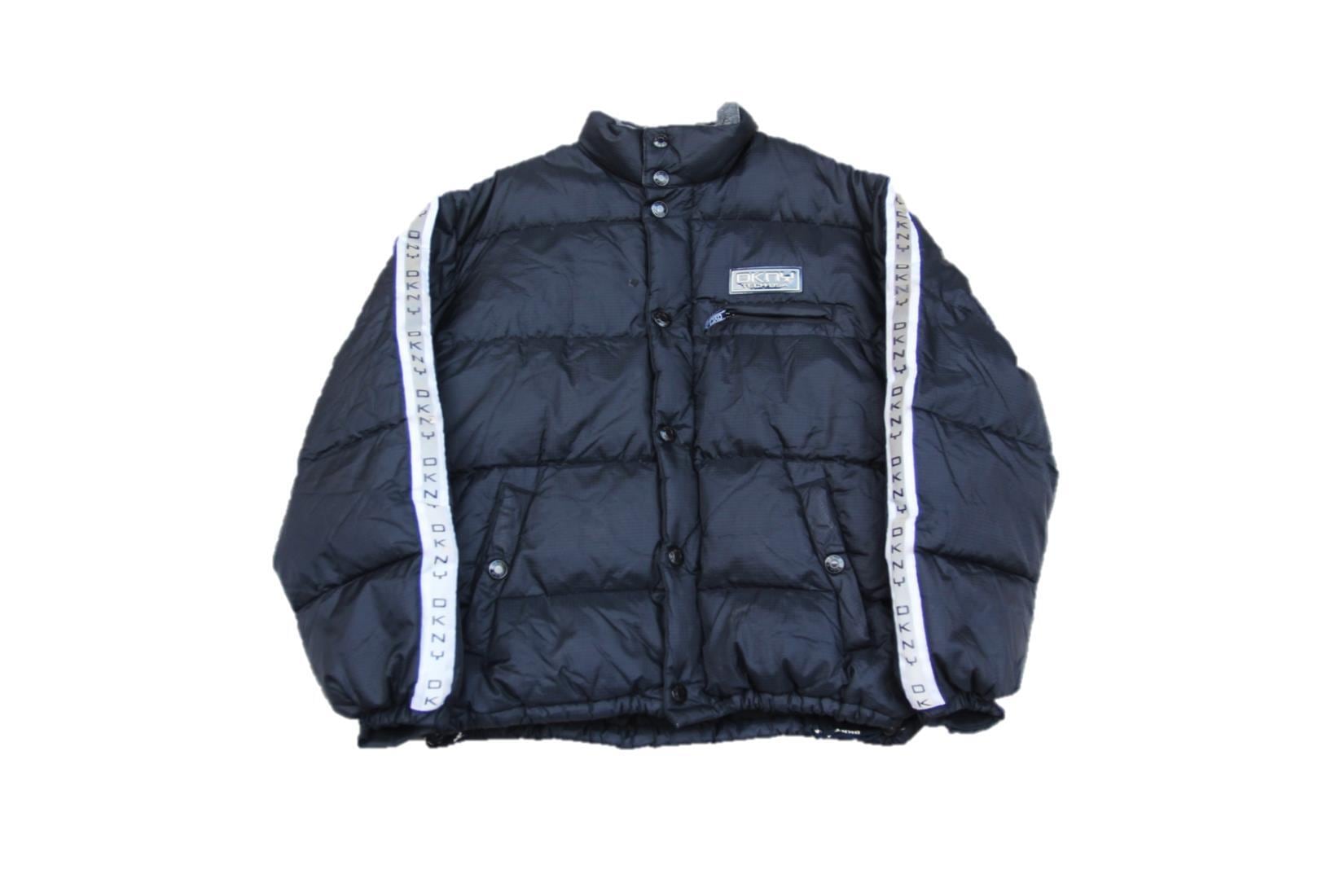 1990年代頃のDKNY製ナイロンダウンジャケットとなります。Techシリーズダウンで如何にもアウトドアアイテムの雰囲気が無くスポーツテイストで今の時代にも大変マッチしているデザインかと思います。胸、袖ラインにリフレクターネーム付きで左右ハンドポケット、衿裏フリース生地張り、裾左右にはドローコードが付き絞って着用も出来ます。フロントはジッパーとスナップボタンの2重留めとなります。お色も黒でサイズ表記はLですが今っぽいスクエア型のビッグサイズシルエットですのでお好きな方、如何にもアウトドアダウンが苦手な方は是非ご検討下さい。