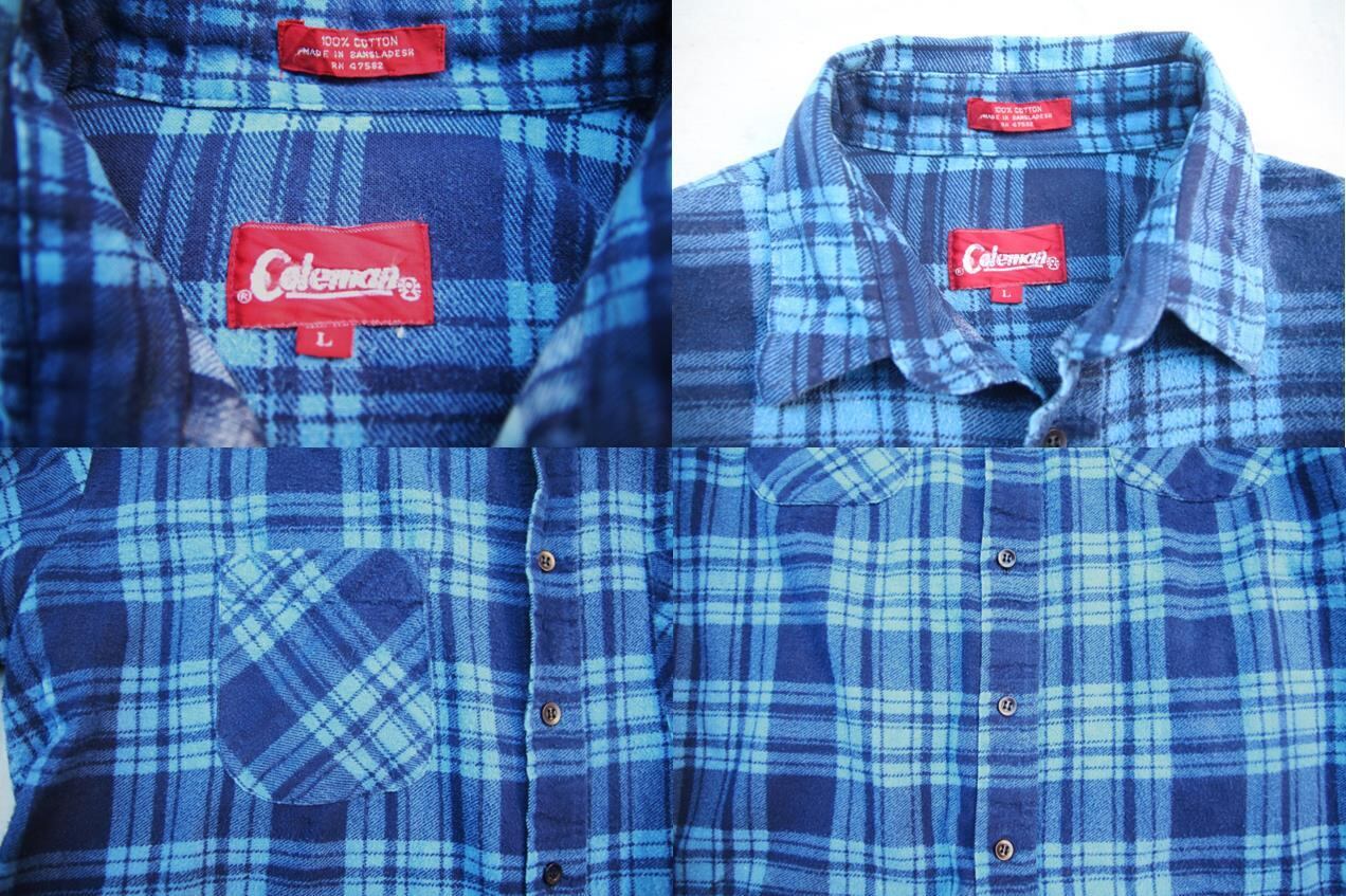 1990年代以降頃のColeman製プリントフランネルシャツとなります。1900年に創業しているアメリカ発の老舗アウトドア用品ブランドで日本でも知名度の高いColemanですがあまりオールドのシャツ等は見掛ける事も少ないイメージです。こちらはプリントネルシャツでブルーベースの発色の良い配色となります。左右胸ポケット付きで裾はラウンド型となります。サイズ表記もLと程良い大き目サイズですので人気も高騰しているフランネルシャツをお探しの方は是非ご検討下さい。