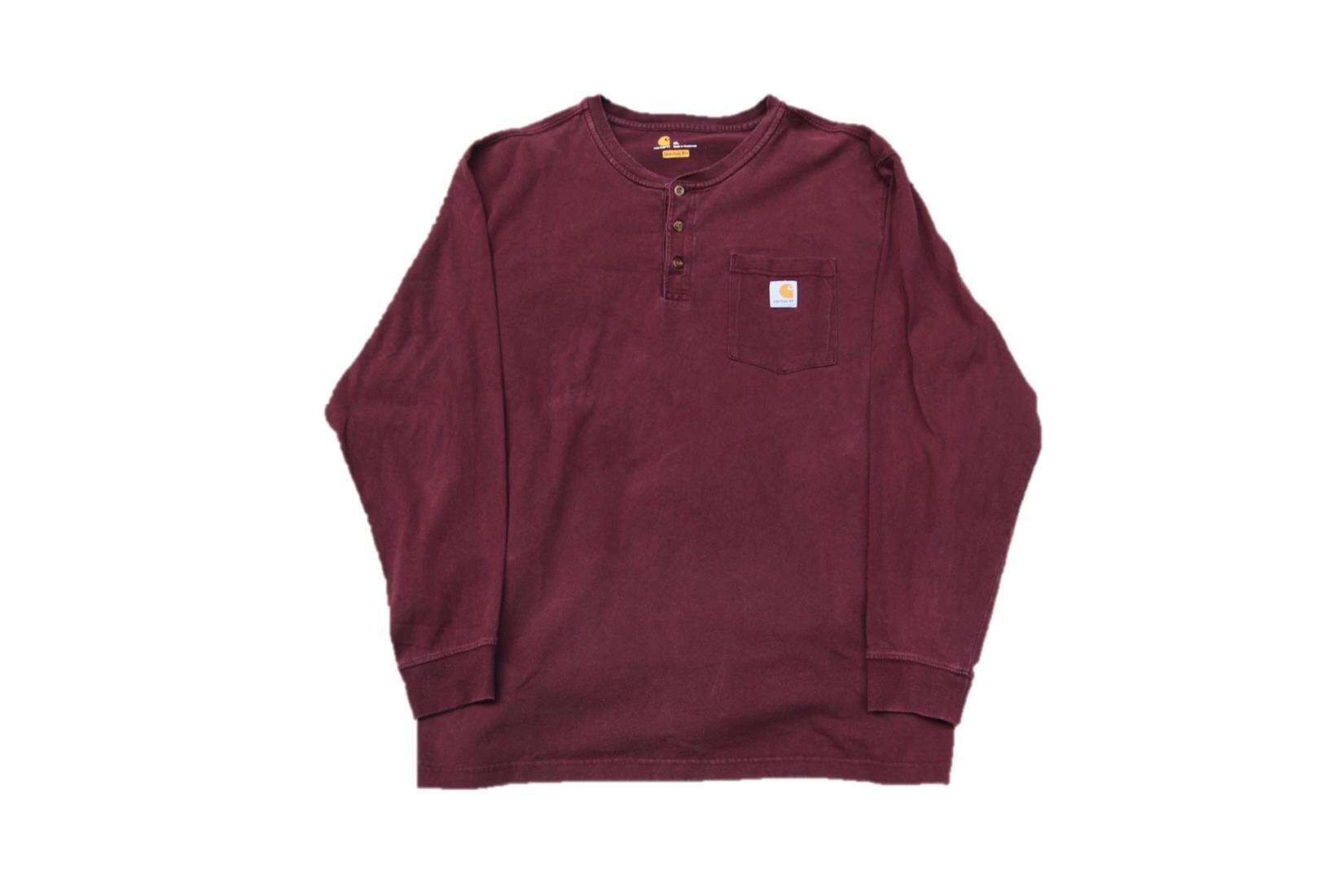 2000年以降頃のカーハート製ヘンリーネックロングスリーブTシャツとなります。アメリカワークウェアブランドの中でも代表的な知名度と人気のあるブランドでアクティブジャケットやぺインターパンツ等も大変人気が高いですね。こちらはヘンリーネック仕様のロンTで胸にポケット付きでポケット部分にお馴染みのロゴタグが付きます。サイズ表記はXLと大分大き目なサイズ感となりますが、ビッグシルエットで着用されても可愛いですし、パンツインしても良いかと思いますので気になる方は是非ご検討下さい。