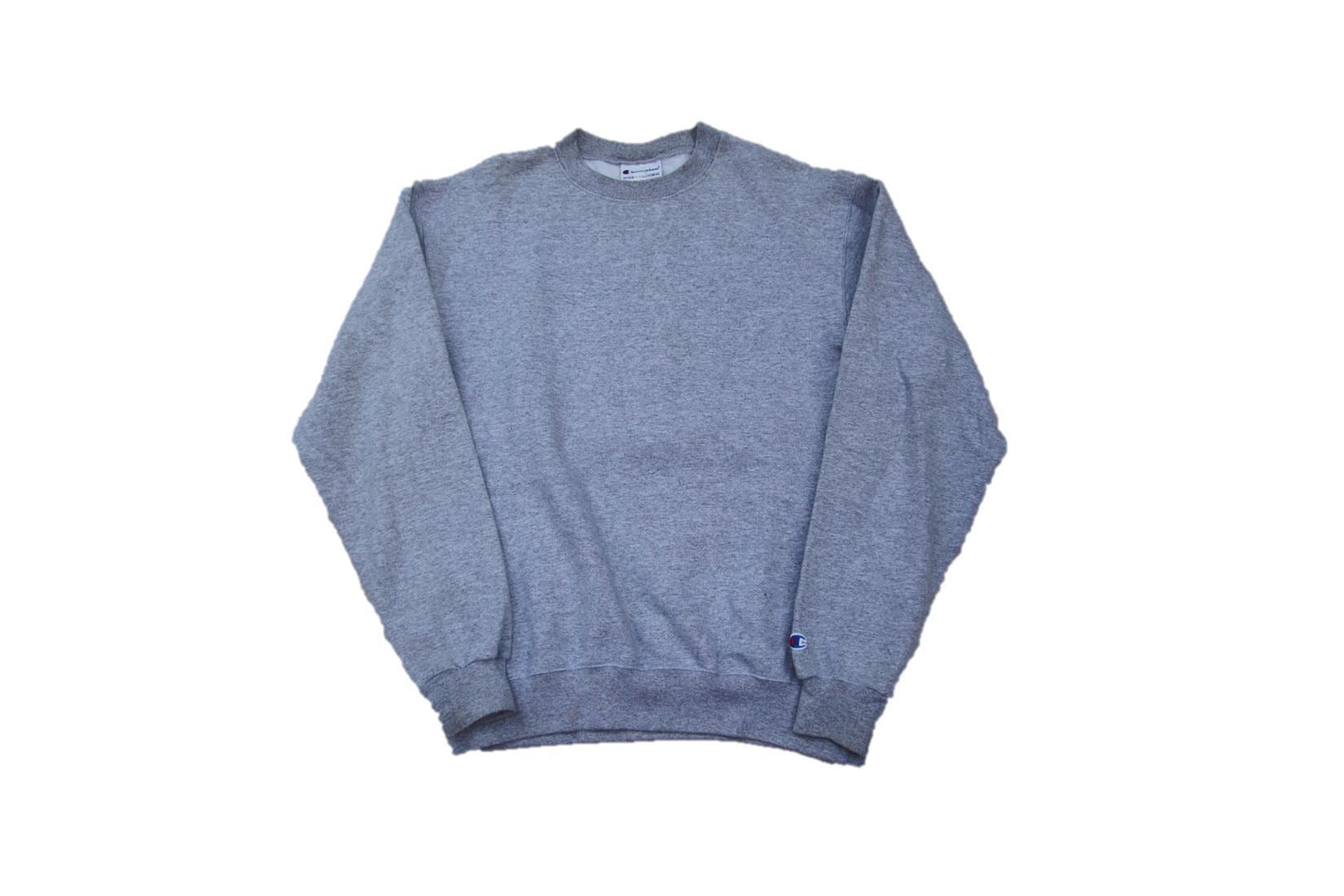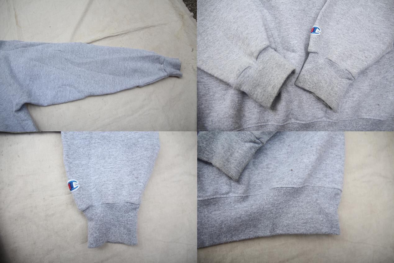 チャンピオン製のスウェットシャツとなります。無地パターンで左袖先にお馴染みのCマーク付き、お色も定番の霜降りグレーと使い易い1点です。サイズ表記はMですが、Lの大き目程度のサイズ感となります。何かと使える無地スウェットですので是非ご検討下さい。