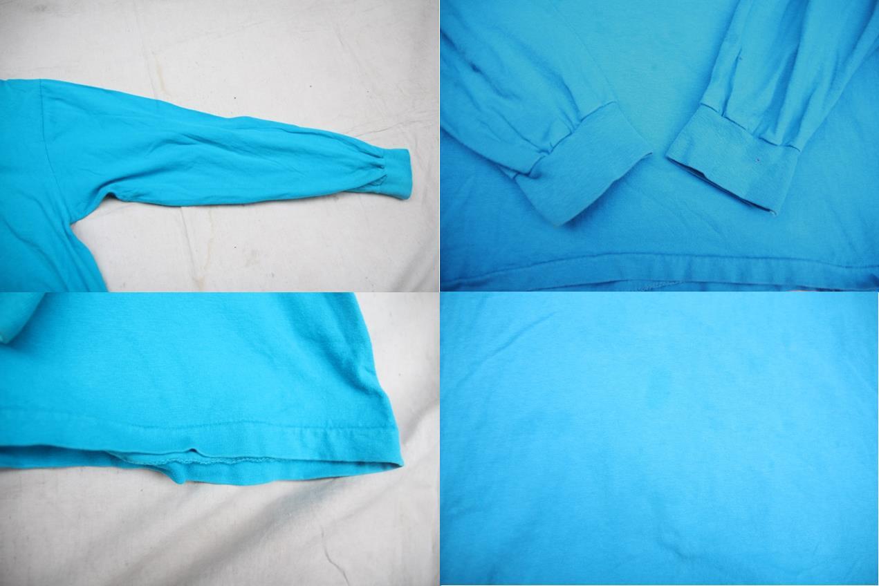 フロント、バック下部付近に多少の黒ずみ汚れ有り、首、袖リブの伸び有り、プリントクラック、多少の色褪せ、生地伸び、使用感が見られます。