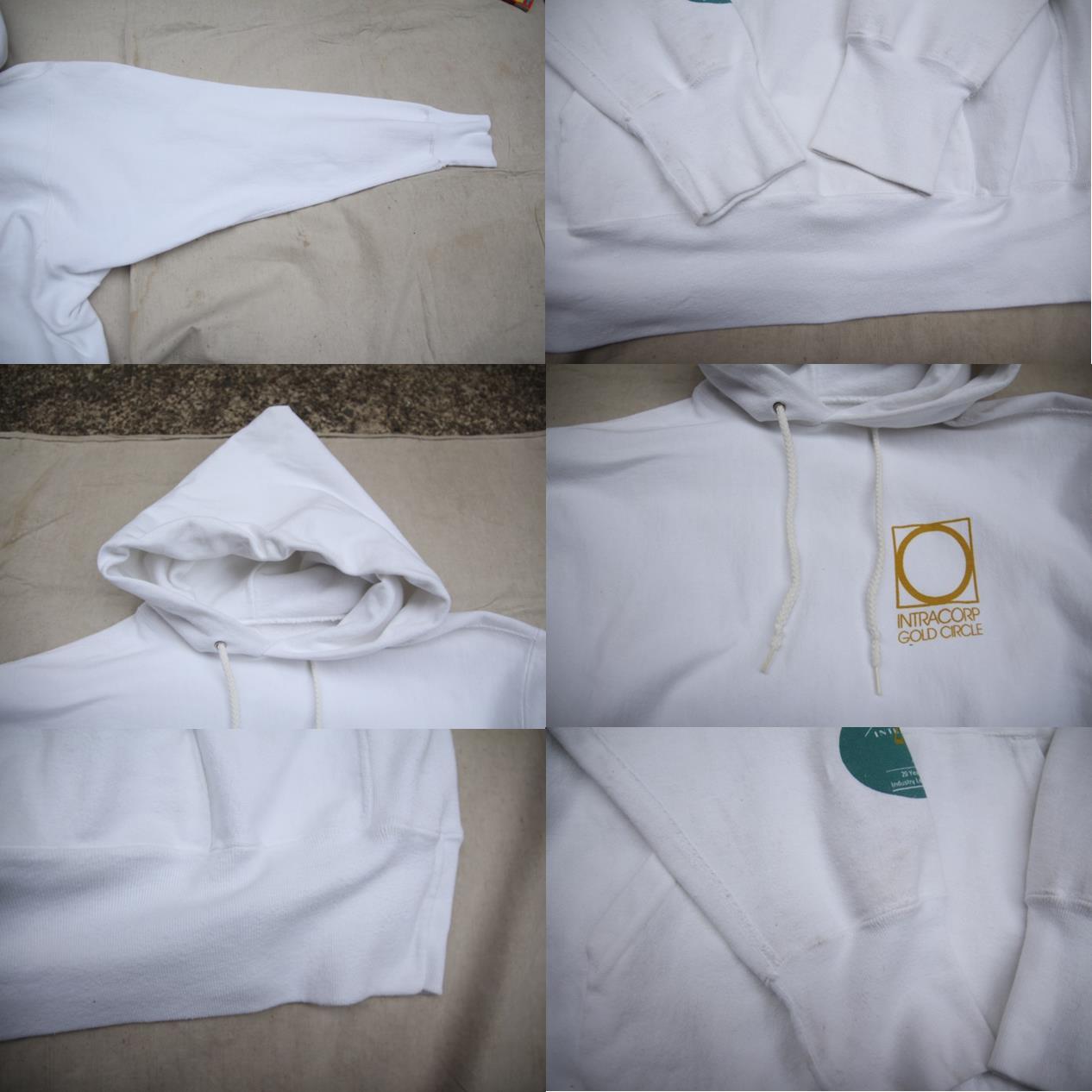 1990年代頃のMedallion製プリントスウェットパーカーとなります。サイドリブ付きのリバースタイプとなりましてオンスも厚めな作りとなります。フロント左胸、右袖先にプリントが入り、プリントからアメリカのビテオゲーム等を手掛けるIntracorp社の20周年を記念して作られたパーカーでしょうか。腰リブ裏にタグ表記が付く形でアメリカ製でサイズはXLと人気のビッグサイズとなります。ホワイトベースなのも比較的珍しいポイントなのでお好きな方は是非ご検討下さい。