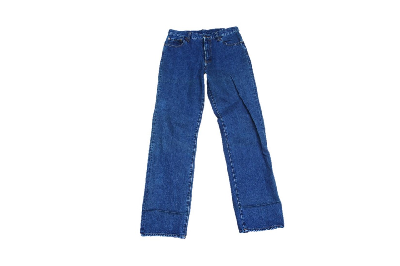 1990年代以降頃のHanes製デニムパンツとなります。アメリカスポーツウェアブランドでTシャツやスウェットシャツ等のボディに使われている事が多い中、デニムを生産しているのは知らなかった方も多いのでは無いでしょうか。シルエットもリーバイス501に比べるとテーパードも緩くストレートよりでジッパー仕様、バックには革パッチ付きでポケットに装飾が入らない形となります。サイズもW32程度とゴールデンサイズでお色も大分残っている濃い目となります。変わり種かつアメリカブランドのデニムをお探しの方は是非ご検討下さい。