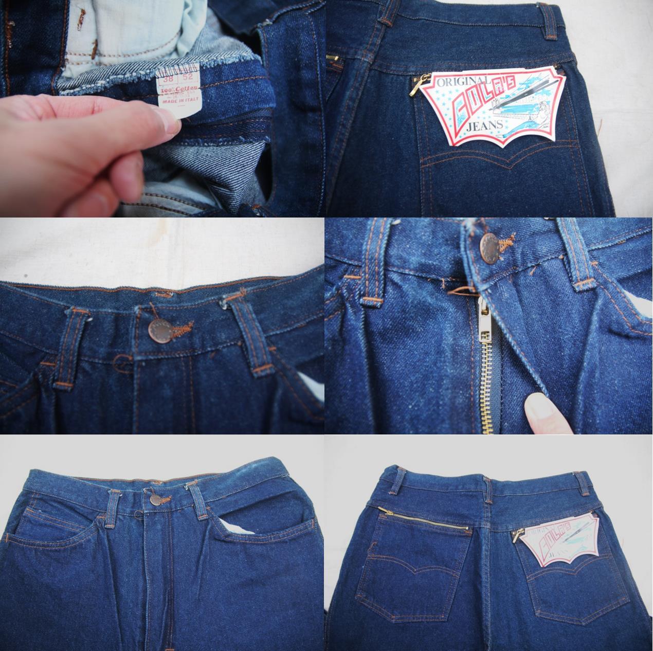 1990年代頃のCola's製デニムパンツとなります。恐らくイタリア系のマイナーブランドでユーロデニムらしくバックポケット縁にジッパー付きだったりお洒落な作りとなります。バック右ポケットに紙パッチ付き、ジッパー裏部分にサイズ表記タグが付きます。バックポケットにはリーバイスの印でもあるアーキュエットステッチが入る点もアメリカブランドでは出来ない点も面白いですね。こちらはフラッシャーは付きですのでデッドストックとなり色残りも濃紺ですし、サイズもW33程度と大変良いサイズ感、ユーロブランドらしい綺麗なストレートシルエットですので出来るだけお安めにオールドの濃紺デニムをお探しの方は是非ご検討下さい。