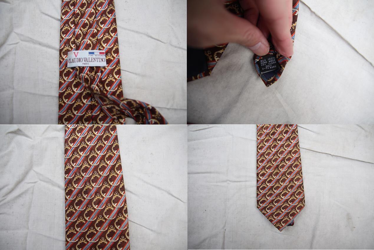 Glaudio Valentino製のシルクネクタイとなります。総柄デザインでイタリアブランドらしいレジメンタルに輪っかの様なデザインが総柄で入りカラーもブラウンベースにブルーとレッドのレジメンタルストライプが入る点もお洒落ですね。そこまでワイドな作りでは無いのでビジネスシーンは勿論、プライベートのコーディネートでお使い頂いても良いかと思います。是非ご検討下さい。