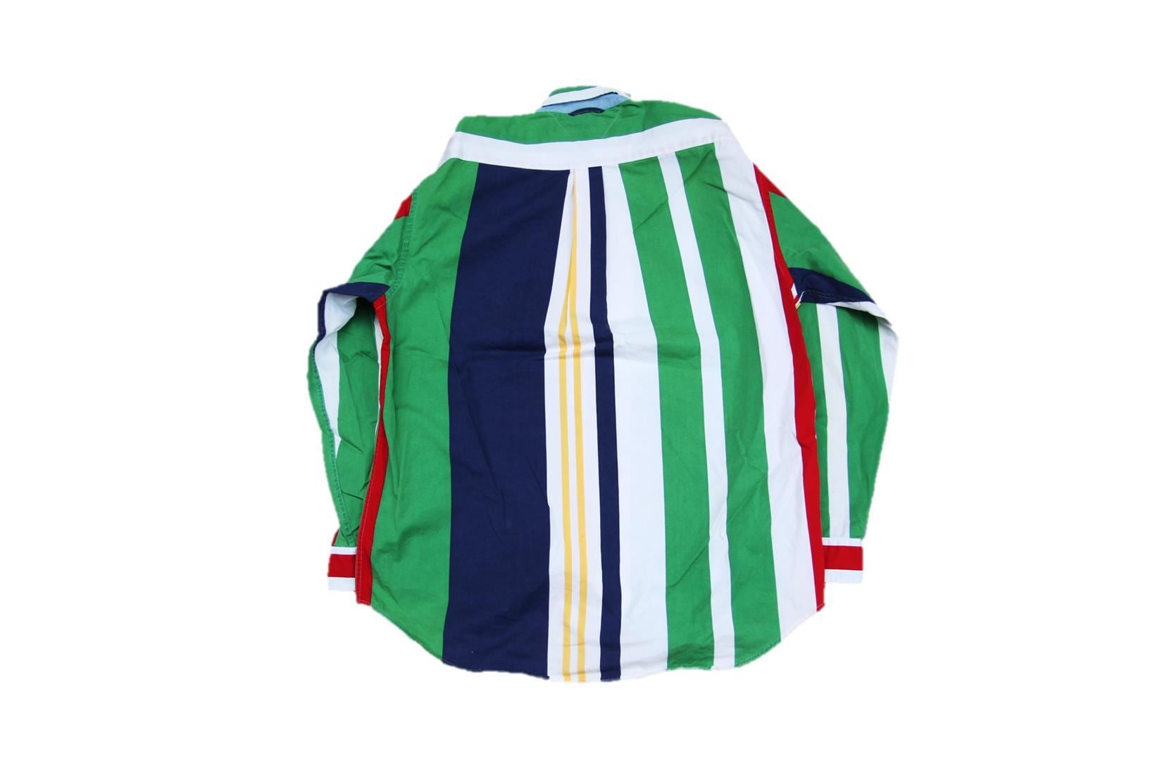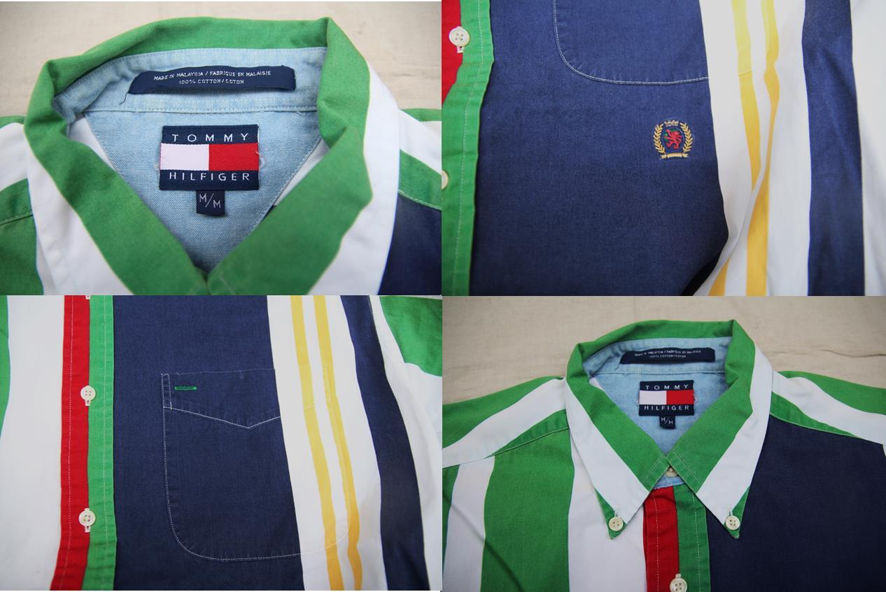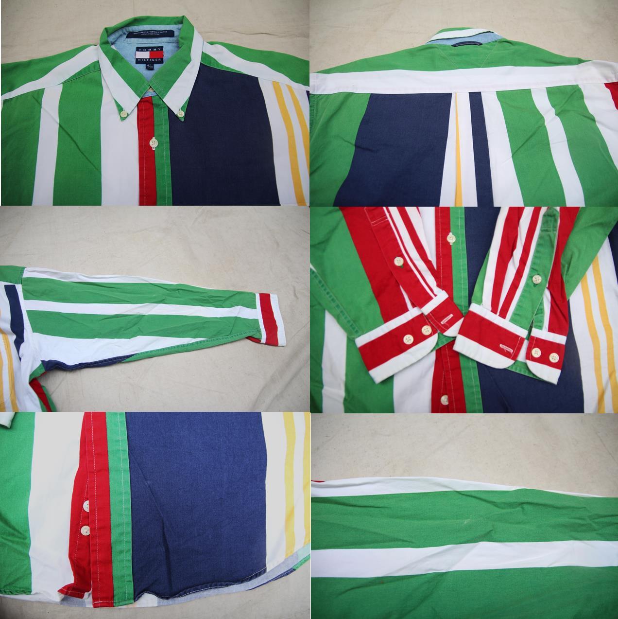 トミーフィルフィガー製のボタンダウンコットンマルチストライプシャツとなります。POPな配色のストライプ柄で左胸ポケット下部にブランド刺繍入り、サイズ表記はMですが、トミーは表記より大き目サイズが多い為、こちらも実寸ではL程度のサイズ感となりますので詳しくはサイズ実寸にてお確かめ下さい。1枚でもインパクト大の可愛い配色ですのでお好きな方は是非ご検討下さい。