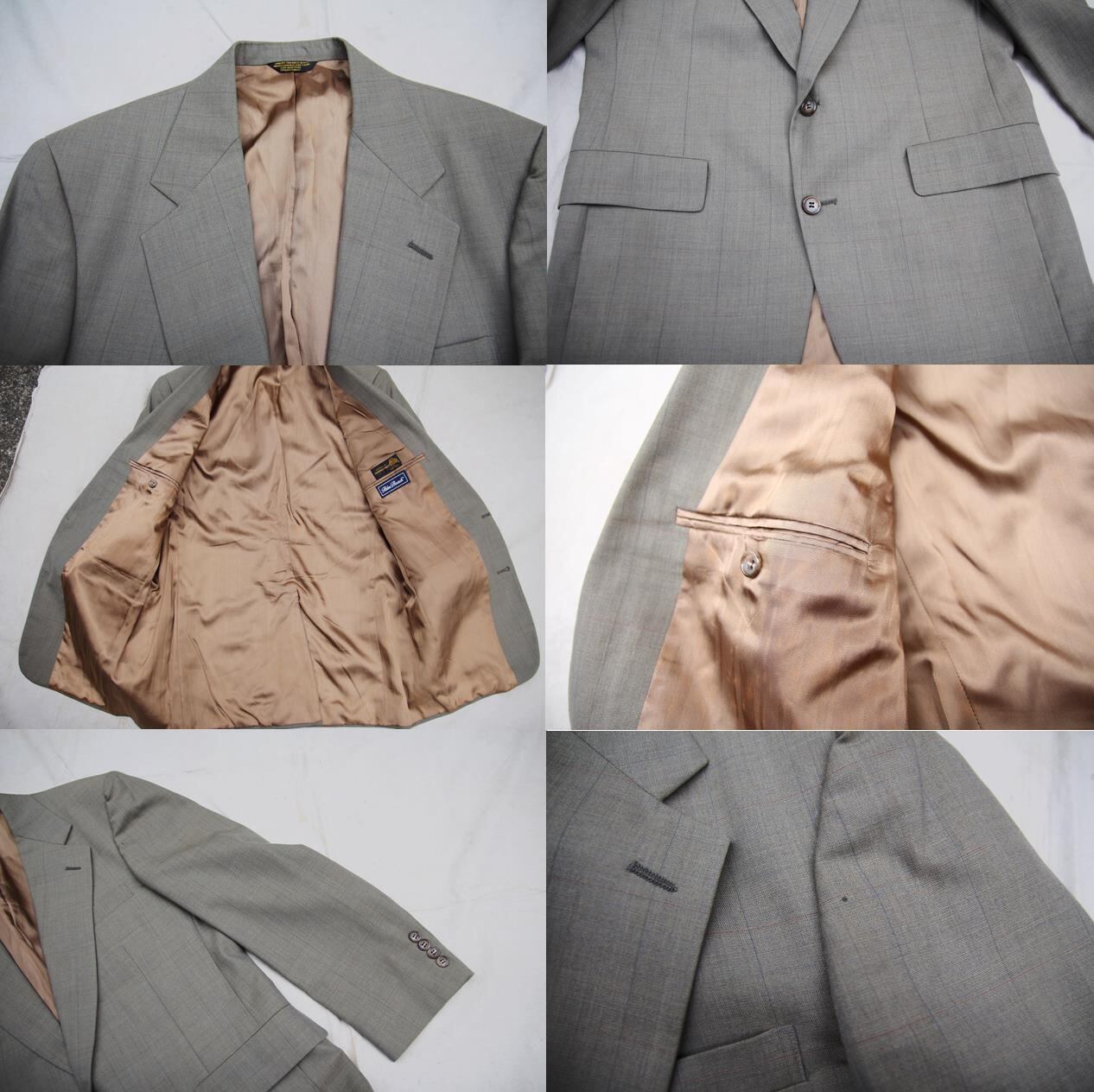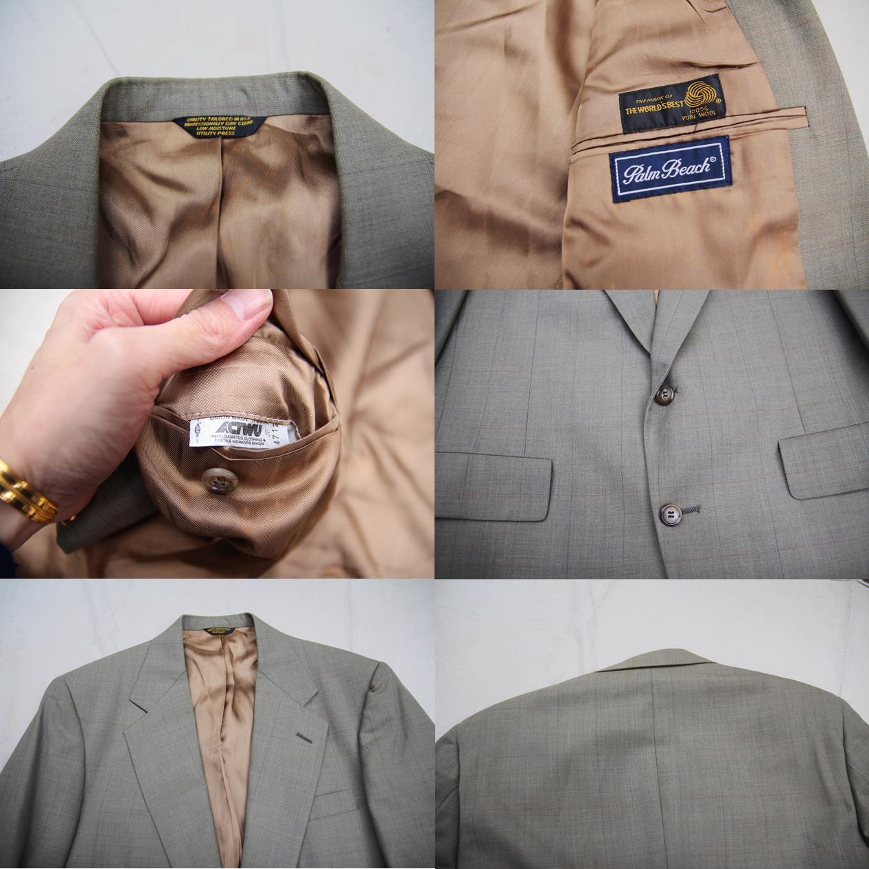 1980年代頃のPalm Beach製ウールテーラードジャケットとなります。オリーブベースでパッと見分かり難いですが細い線でのチェック柄となっております。素材はウール地ですが、サマーウールの様な大変薄手な素材感となります。フロントは2つボタンで光沢感のあるブラウンベースのサテンライナーが大変大人っぽくて良いですね。サイズも40程度となりますのでサイズの合う方、オールドテーラードをお探しの方は是非ご検討下さい。