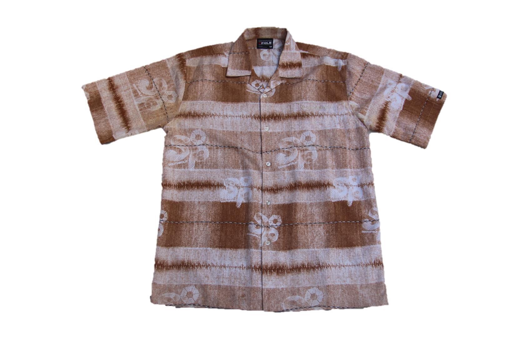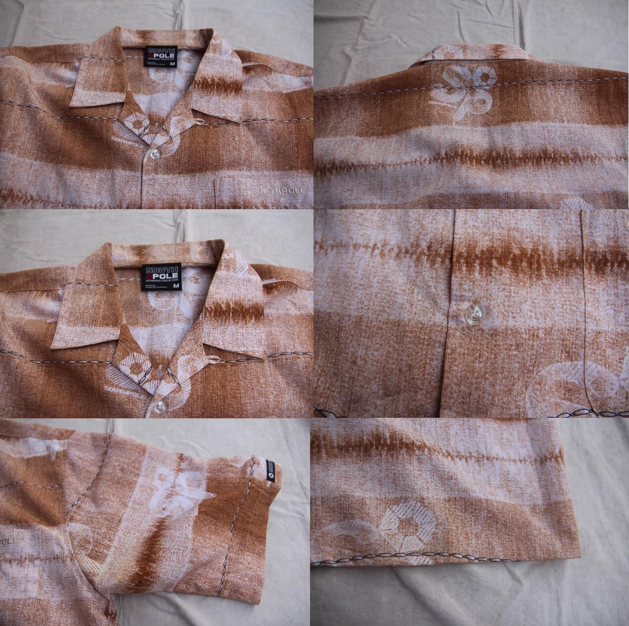 1990年代以降頃のSouthpole製半袖ポリエスター総柄シャツとなります。アメリカヒップホップ系ブランドのSouthpoleですが、デザイン、サイズ感もHiphopらしいシャツとなります。こちらはブラウンとホワイトベースで所々にSPの文字が入っていたりデザイン性が高いシャツとなります。裾BOX型となりますので様々なパンツスタイルに対応出来るかと思います。サイズはMですが実寸ではL大き目もしくはXL程度のサイズ感となります。HIPHOPブランド好き、Southpoleがお好きな方は是非ご検討下さい。