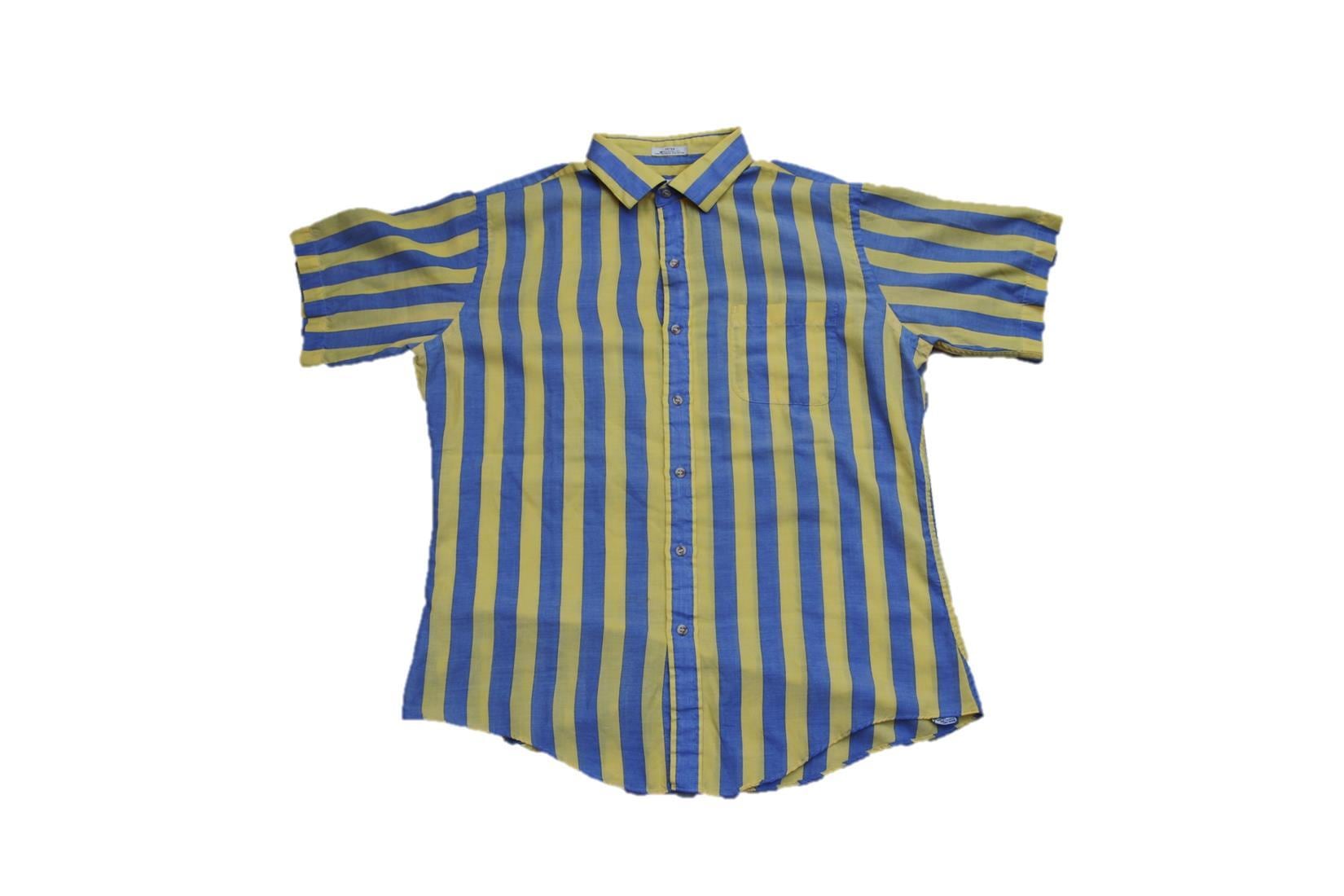 1980年代頃のArrow製半袖ストライプシャツとなります。コットンとポリエスターの混紡素材で太目なピッチのストライプ柄となりピンストライプ柄等に比べてカジュアルなイメージとなるシャツとなります。お色もイエローとグレーベースですがそこまで派手過ぎさを感じさせない配色かと思います。サイズもLと良いサイズ感ですので是非ご検討下さい。