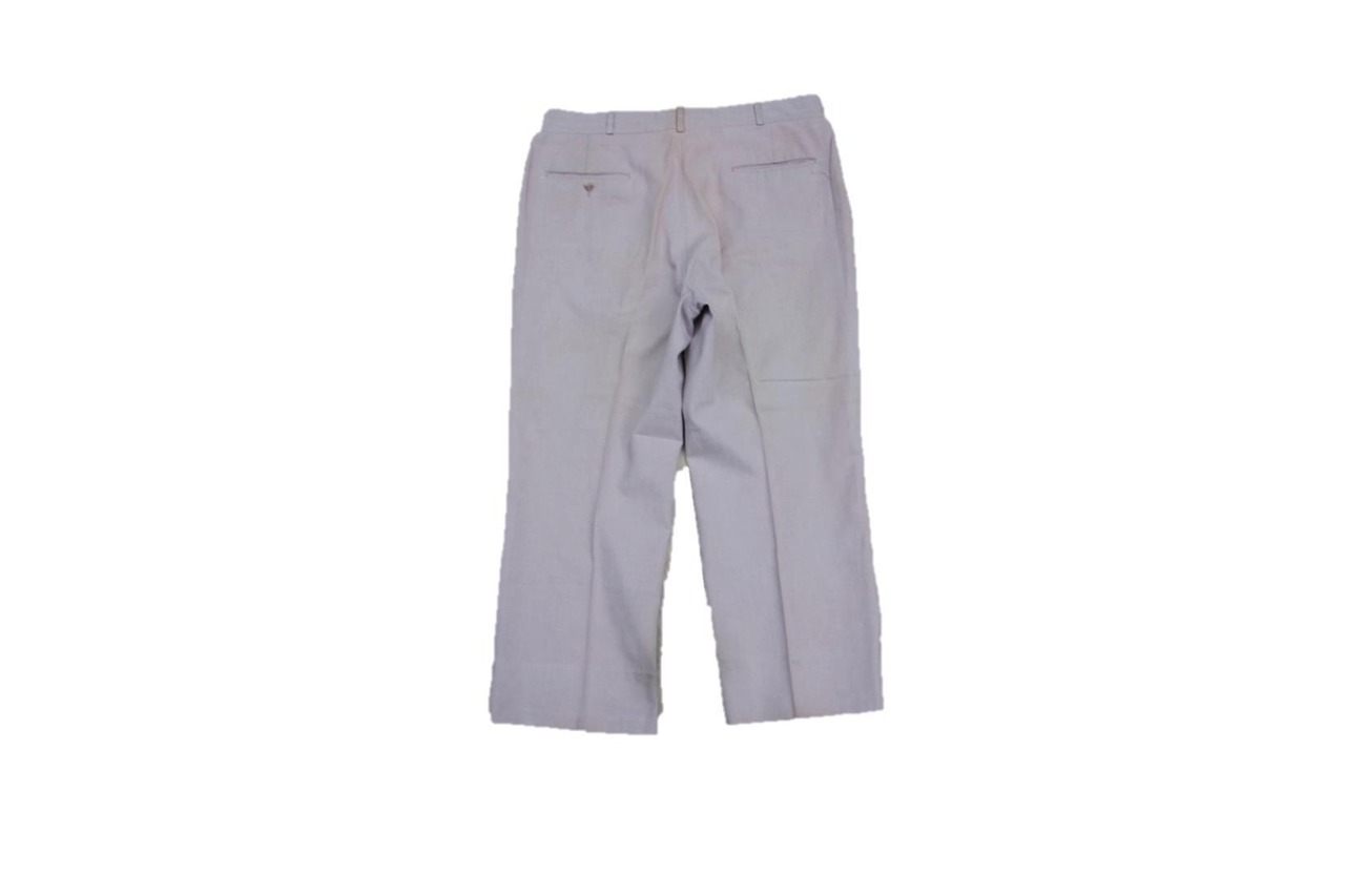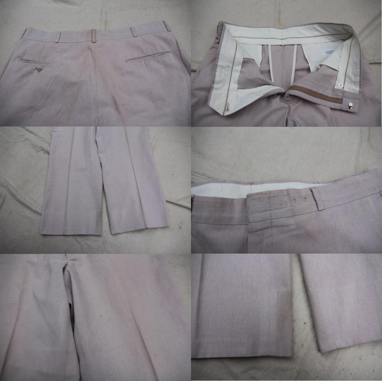 1980年代以降頃のブランド不明スラックスパンツとなります。ワークパンツの様なデザインのこちらは霜降りブラウンの様なコットン地でフロントフック仕様のジッパーでシンプルなルーズストレートとなります。生地感も薄めで春夏時期等にも大活躍してくれそうなパンツです。ウエストサイズが35インチと多少大き目なサイズ感ですのでベルトで絞って穿かれたい方、サイズの合う方は是非ご検討下さい。