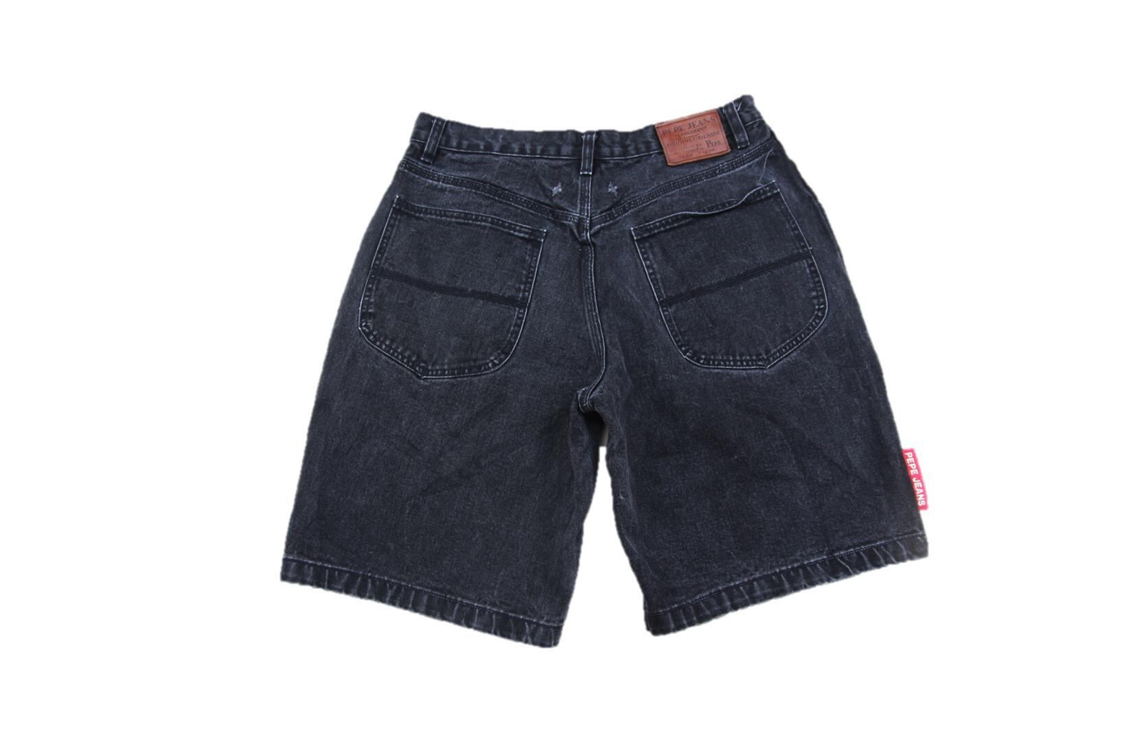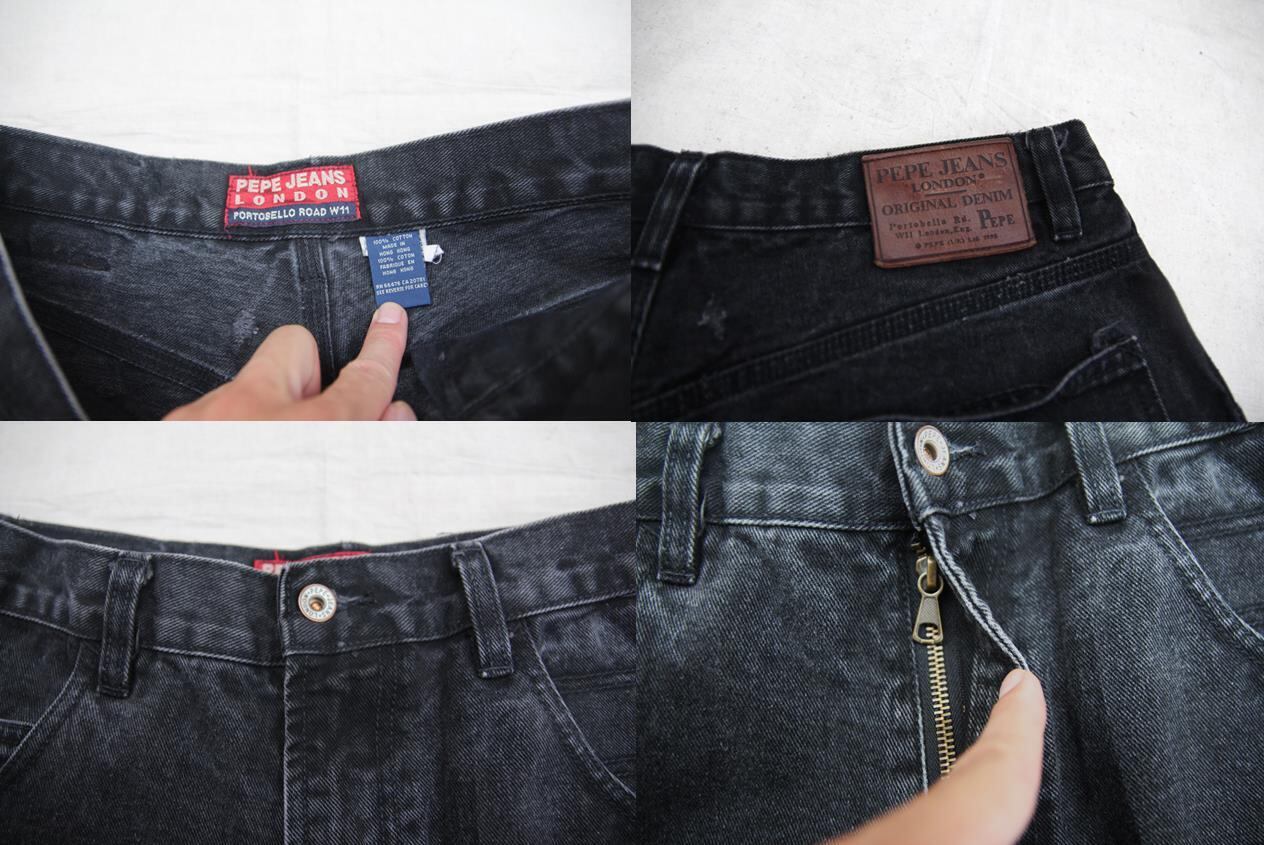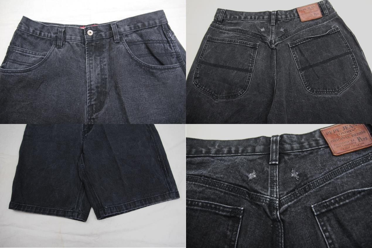 1990年代頃のPePe Jeans London製ブラックデニムショーツとなります。1973年にイギリスロンドンにてShah3兄弟によって設立されたブランドでデニムアイテムを中心で展開して成功を収めている数少ないブランドとなります。こちらはシンプルなデザインとなり、右足裾脇にブランド赤タブ付きでバックポケットには並行ステッチが入ります。バックには革パッチも付きます。サイズもW34程度と良いサイズ感ですし、裾幅も広く綺麗なワイドシルエットが特徴です。人気のバギータイプのショーツですのでお探しの方は是非ご検討下さい。