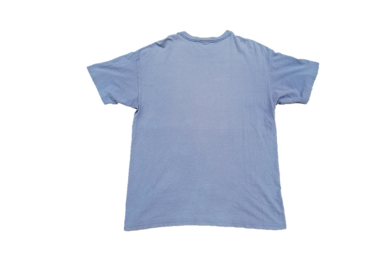 首裏タグ欠損、首リブ周りの解れ、両肩部分に擦れと細かい汚れ有り、裾部分にも細かい染み汚れ有り、フロントプリントクラック、全体的にフェード感、生地擦れ、ピンホールと伸び、使用感が見られます。