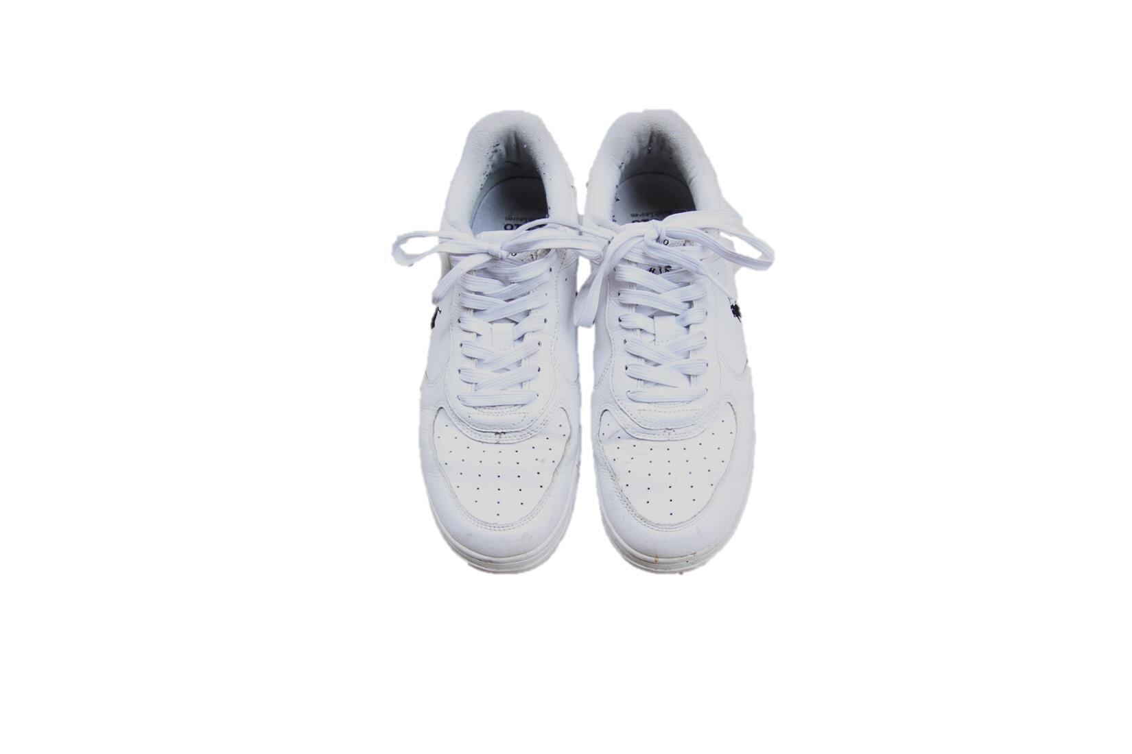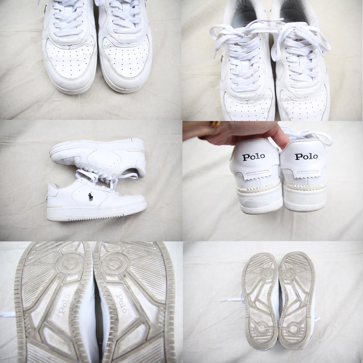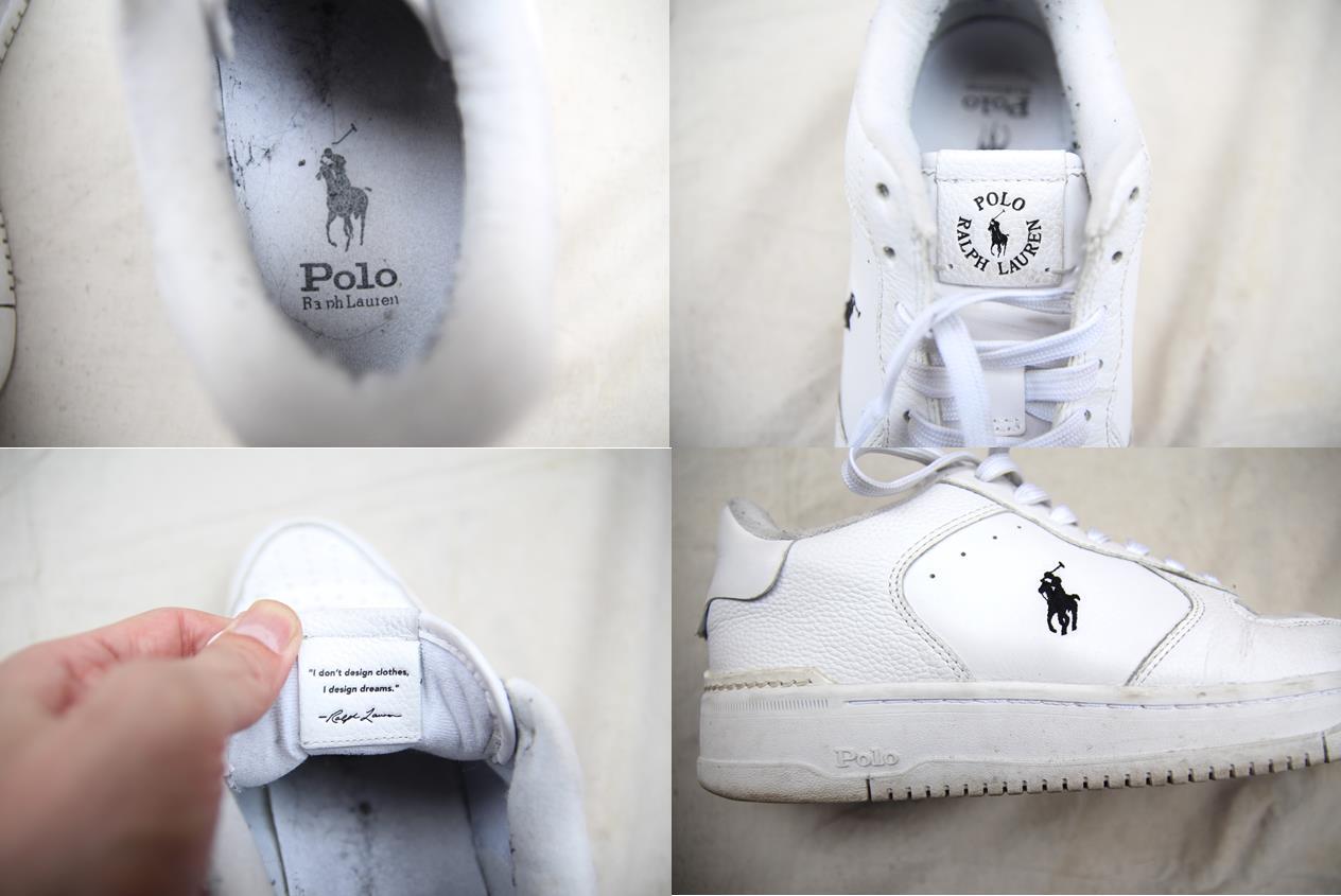 ラルフローレン製のレザースニーカーです。デッキシューズや革靴等は見掛ける事が多いですがこの手のボリューム感あるスニーカーはあまり見掛けないかと思います。形がナイキのAF1に酷使しておりスウォッシュマークがラルフアイコンのポニーになってたり、ヒール部分がタッセル仕様になっていたりブランドの細かい拘りが感じられる1足です。サイズは9で27cm程度なのでサイズの合う方、変わり種がお好きな方は是非ご検討下さい。