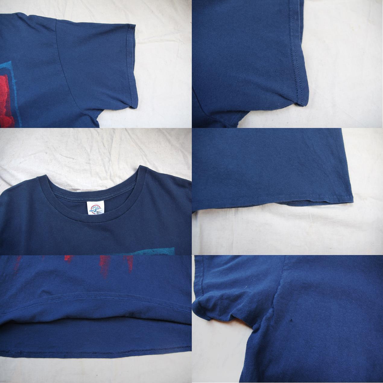 バック左脇付近に細かい染み汚れ有り、フロント裾付近に擦れ汚れ有り、首リブ伸び、プリント割れ、色褪せ、擦れ、多少の使用感が見られます。