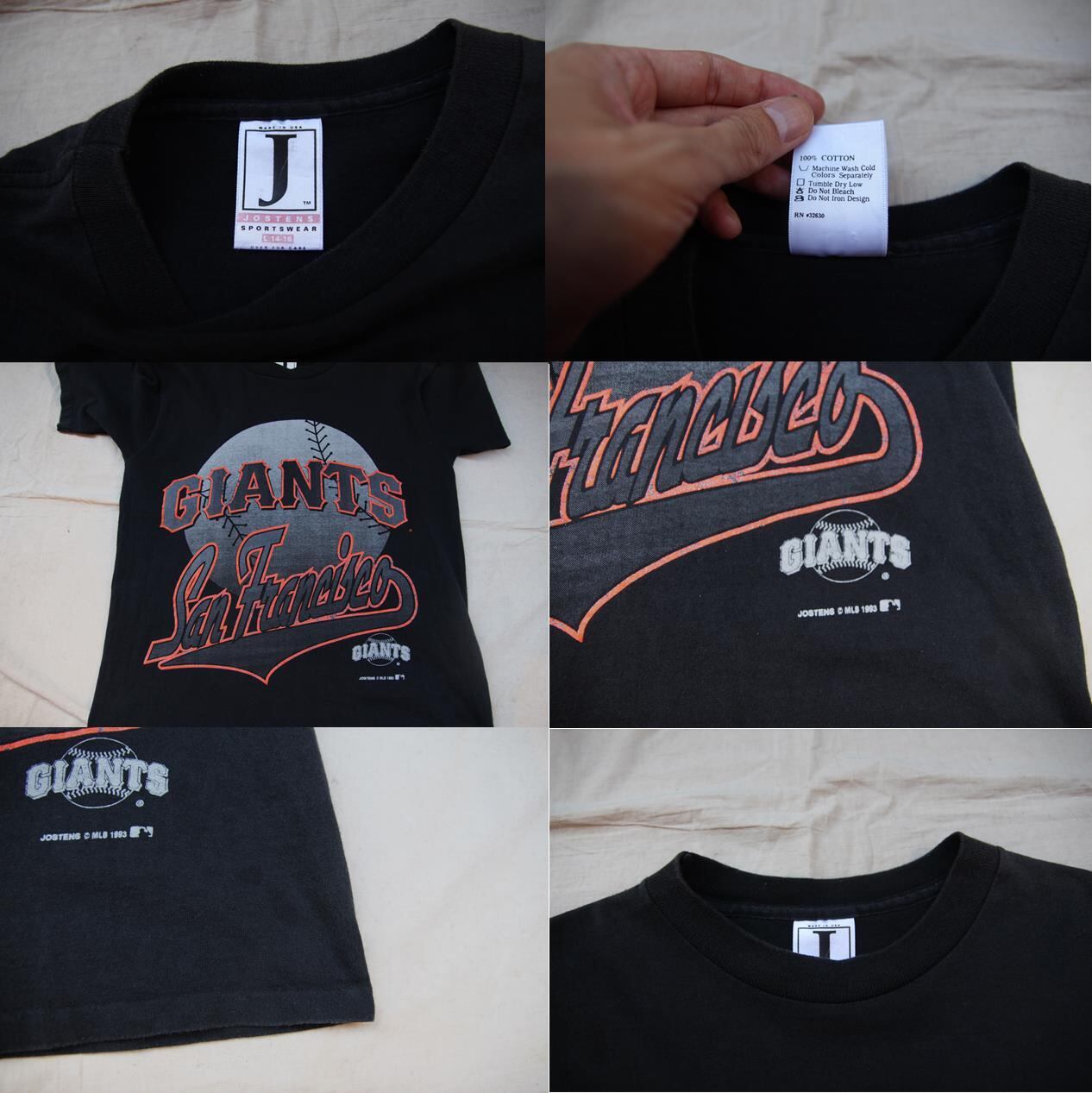 1990年代のJostens製プリントTシャツとなります。フロントプリントのみでアメリカプロベースボールリーグの通称MLBに所属するサンフランシスコジャイアンツの文字と野球ボールがプリントされる事から恐らくチームグッズTシャツとして販売されていたのかと思います。コピーライトの表記も入る事からオフィシャルTシャツとなり、サイズ表記もLの14-16なのでユースサイズとなります。着丈感も短めですのでタイト目Tシャツをお探しの方や女性の方にお勧めですのでMLBTシャツをお探しの方は是非ご検討下さい。