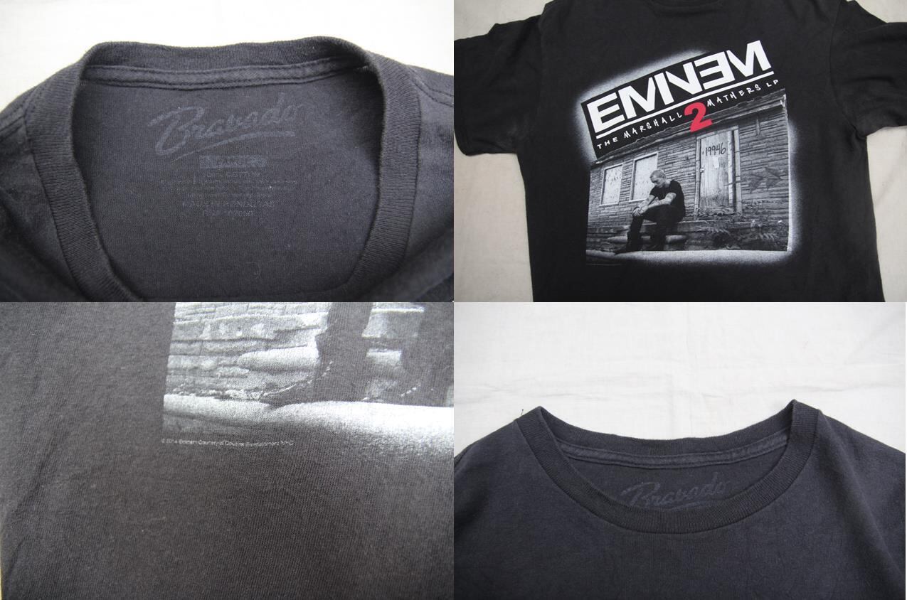 Bravado製の半袖ミュージックTシャツとなります。プリントは本人主演で今までの半生が映画にもなった白人ラッパーとして頑固たる地位を気づいたエミネムの2013年に発売された12枚目のアルバムであるMarshall Mathers 2LPのCDジャケットがプリントされております。2014年のコピーライトが入る為、恐らく販促用Tシャツとして生産された物かと思われます。サイズもLと程良い大き目サイズですし、近年エミネム等のアーティストTシャツも価格高騰しておりますのでお好きな方は是非ご検討下さい。