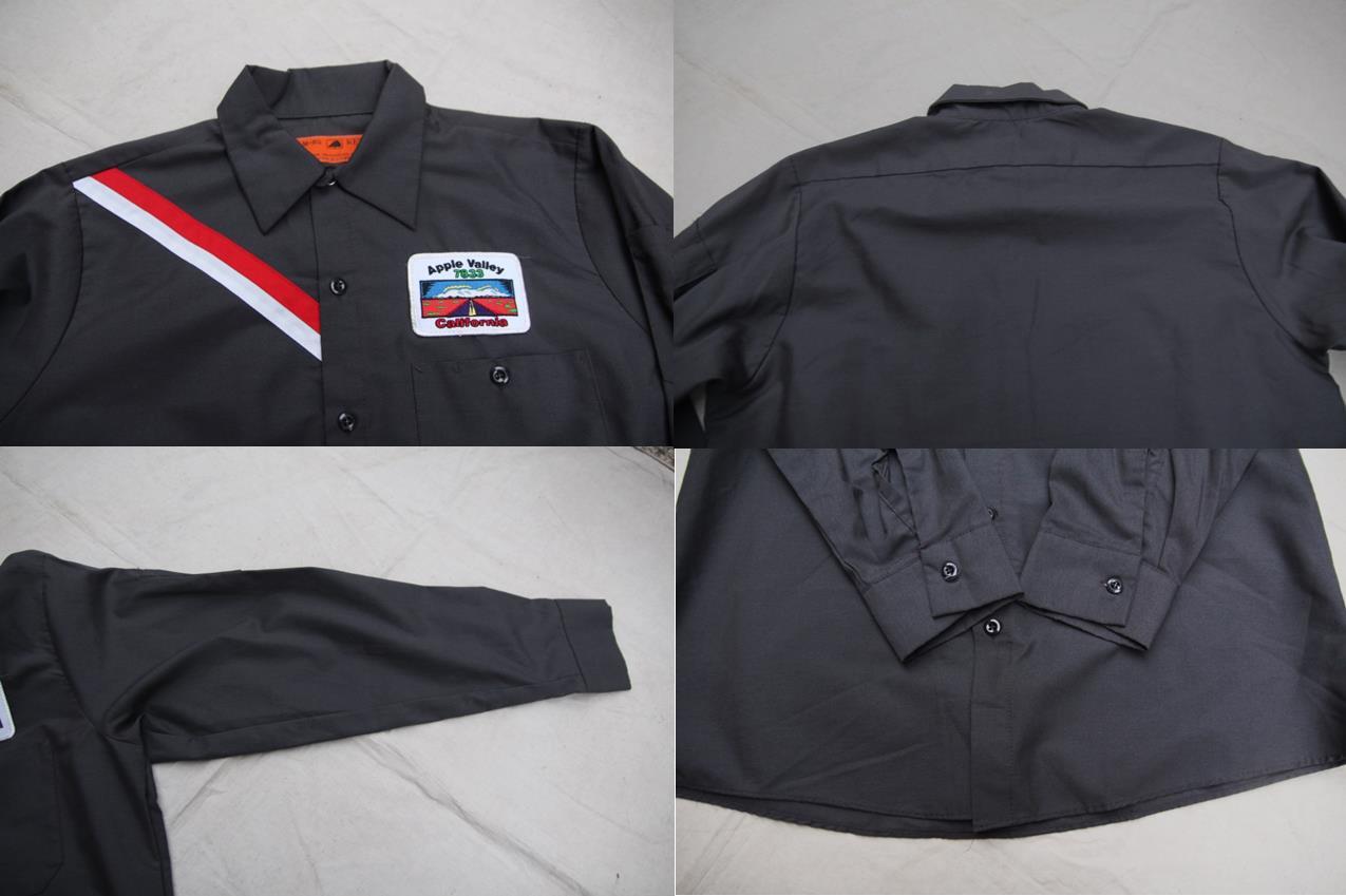 1990年代以降のRed Kap製長袖ワークシャツとなります。Dickies等と並びアメリカ低所得者の労働着として高いシェアを誇るブランドでこちらは胸にラインとワッペンが付くワークシャツとなります。ワッペンはカリフォリニアにあるApple Valleyのデザインなのでその町の企業労働着として生産された物かと思います。チャコールグレーで素材はコットンとポリエスターの混紡素材です。ワークシャツの割に使用感が少なく大変良い状態となります。サイズもM-Rですのでサイズの合う方、ワークシャツ等がお好きな方は是非ご検討下さい。