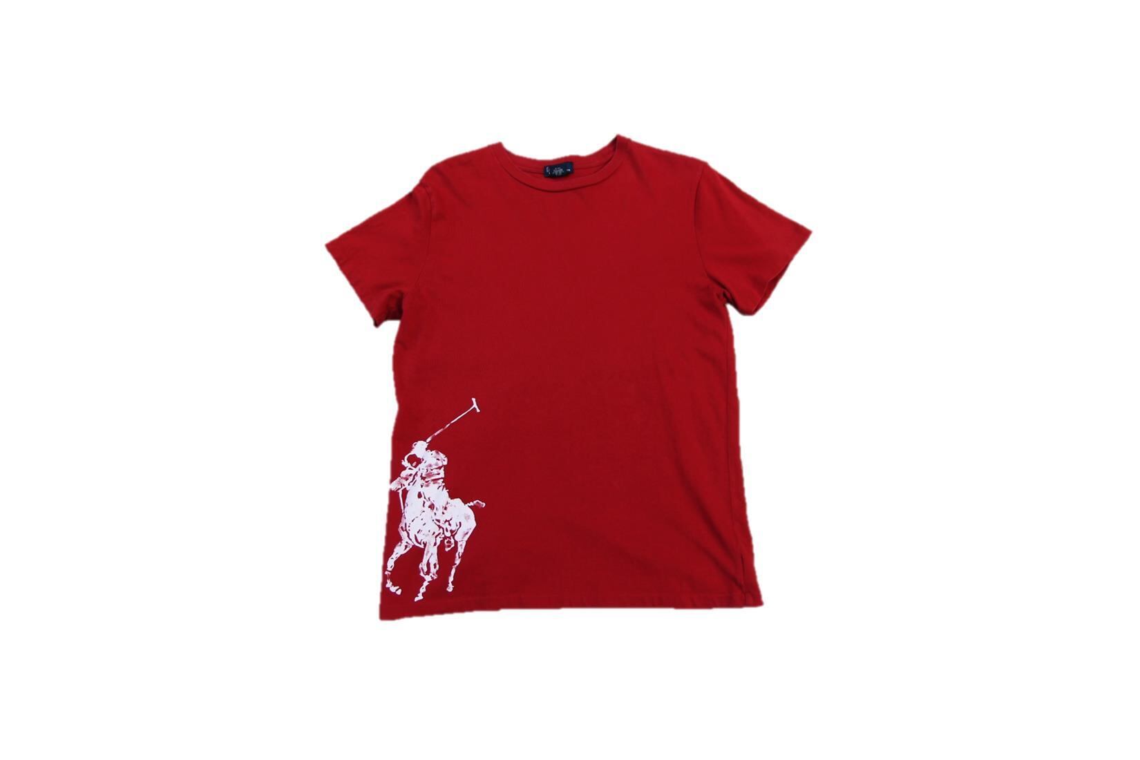 ラルフローレン製の半袖プリントTシャツとなります。お馴染みのブランドアイコンでもあるポニーマークがビックポニーとして右裾付近にプリントされている一見変わった位置にプリントが入るTシャツとなります。お色もバーガンディーで素材はオールコットン地、サイズはボーイズのXL表記ですのでメンズMの小さ目サイズ程度となります。小柄な男性やジャスト目のTシャツ好きの方、女性の方にお勧めですので是非ご検討下さい。