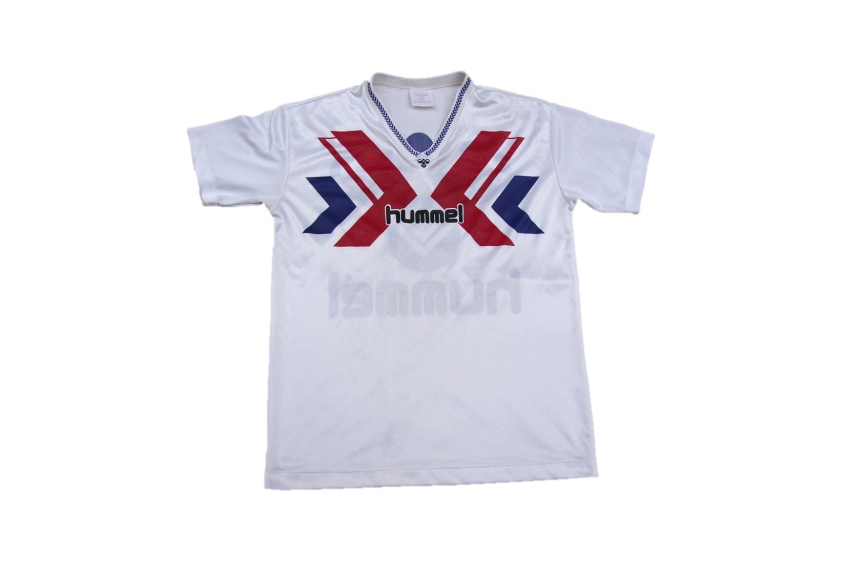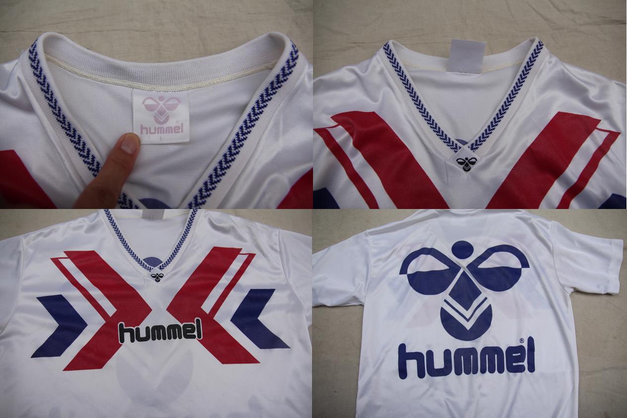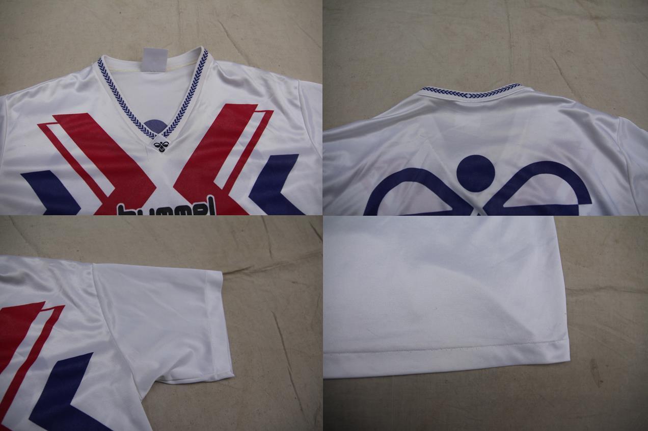 Hummel製の半袖ゲームシャツとなります。デンマーク発祥のスポーツウェアブランドでサッカーデンマーク代表のユニフォームとしても採用されているブランドとなります。こちらは代表チームレプリカ等では無くブランドオリジナルのゲームシャツかと思われます。両面にプリントが入り、バックにナンバリング等は入らない仕様です。サイズはL表記ですので比較的タイト目なサイズ感が多いゲームシャツの中では緩めなシルエットで着用頂けるのでタウンユース、普段使いでも取り入れ易いサイズ感かと思います。ゲームシャツは定番人気があるアイテムですのでお探しの方は是非ご検討下さい。