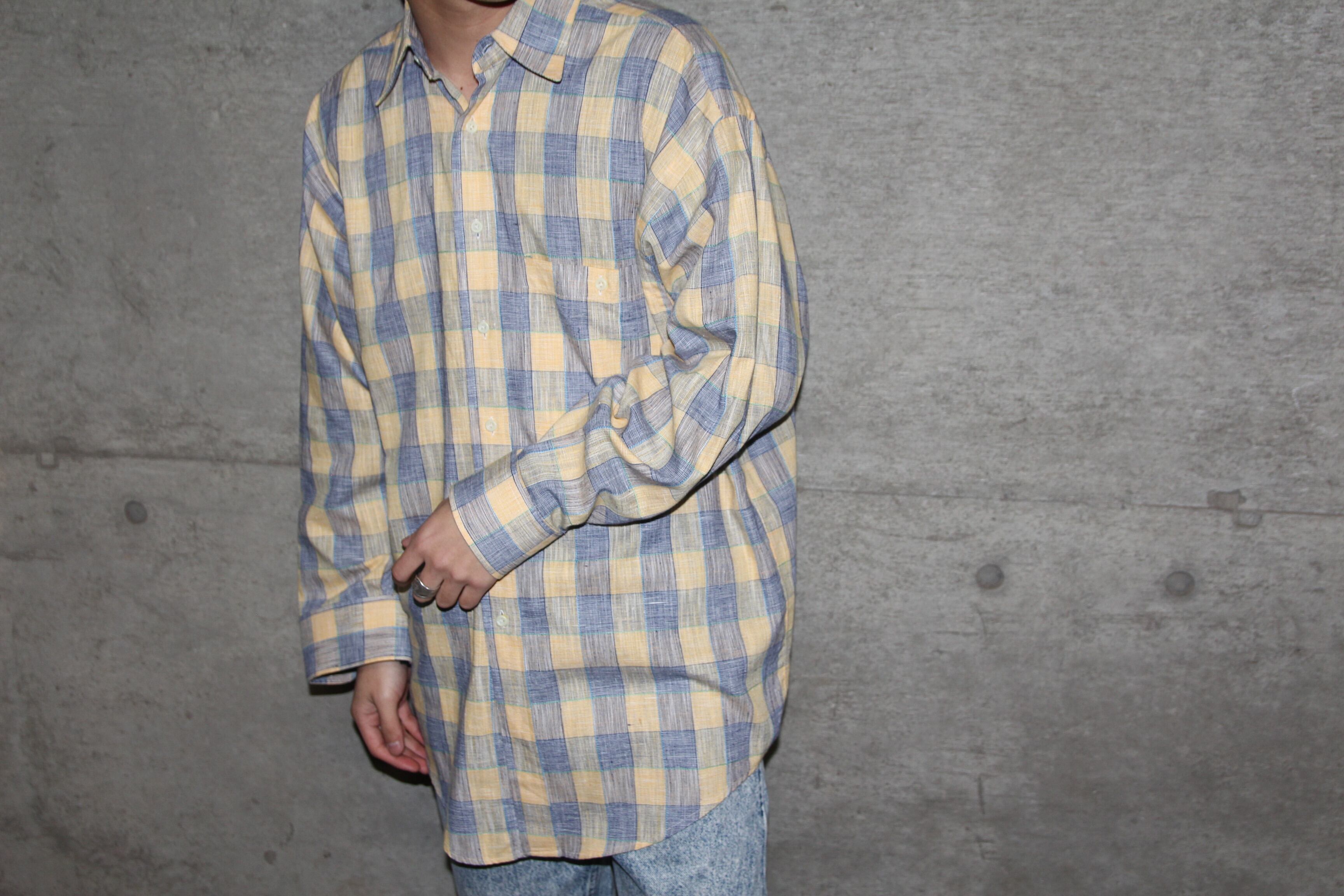 1980年代頃のDior製の長袖シャツとなります。こちらのアイテムは薄いイエローとブルーの綺麗なチェック柄が特徴のシャツとなっております。コットンポリ素材なので肌触りも良いアイテムです。サイズ表記はMサイズですが、肩幅や身幅は大きめに作られている為Lサイズと変わらないサイズ感となっております。シルエットも綺麗な作りとなっている為フォーマルなスタイルにも合わせやすいアイテムです。価格も手が出し易い価格ですので現行品にこだわりがない方や昔のDiorがお好きな方は是非この機会にご検討の程宜しくお願い致します。