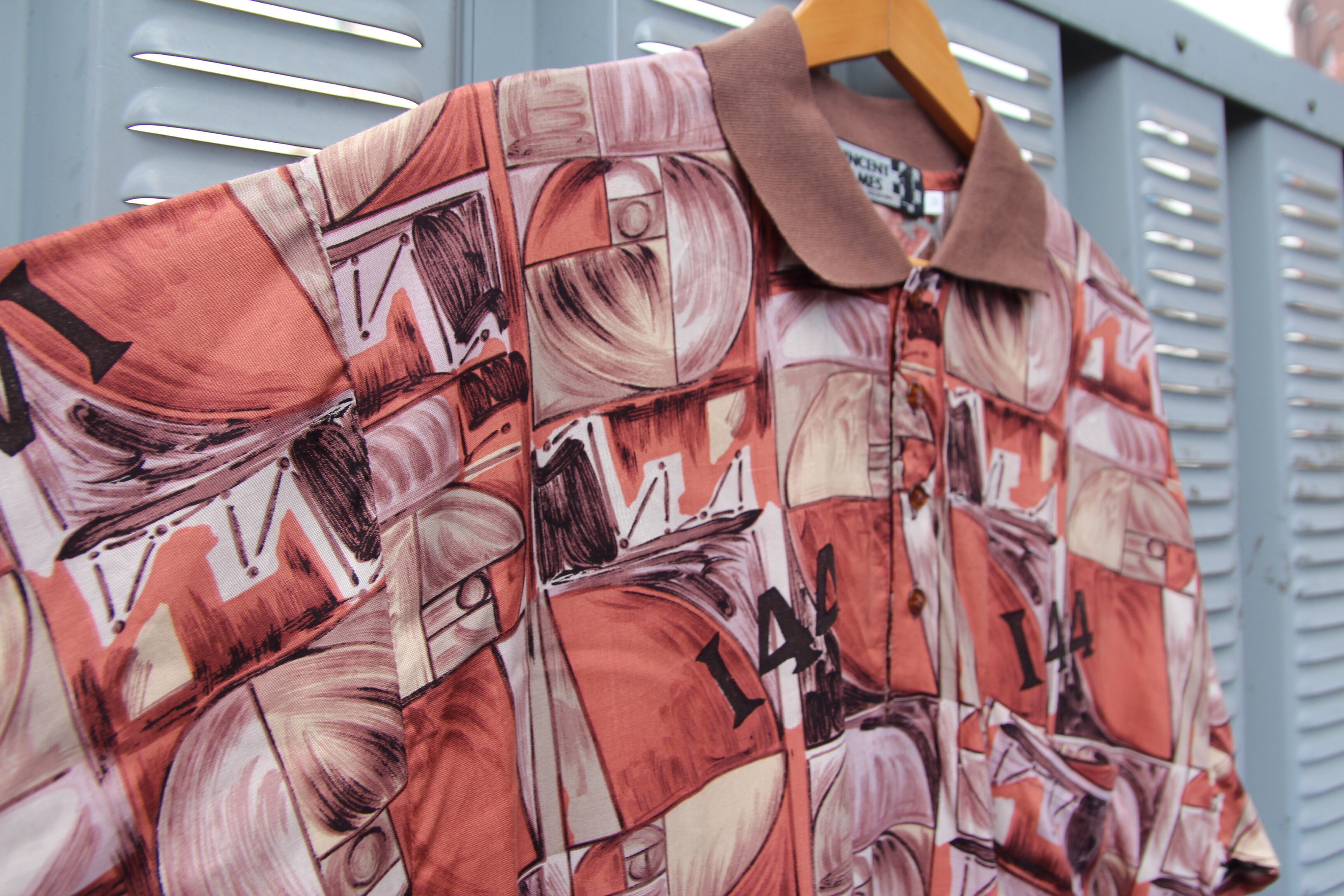 1980年代のVincent James製のプルオーバータイプの半袖シャツです。こちらのアイテムは総柄のプルオーバータイプとなっておりフロントは4つ留めのボタンになっております。かなりデザイン性があるアイテムで、夏は一枚で、春や秋頃は下にロングTシャツなどを合わせると良いアイテムです。生地もレーヨンで薄く、着やすいアイテムです。表記はMサイズとなっておりますが、実際はLサイズ程度あるかと思われます。男女問わず着用して頂けます。気になった方やお好きな方は是非この機会にご検討の程宜しくお願い致します。