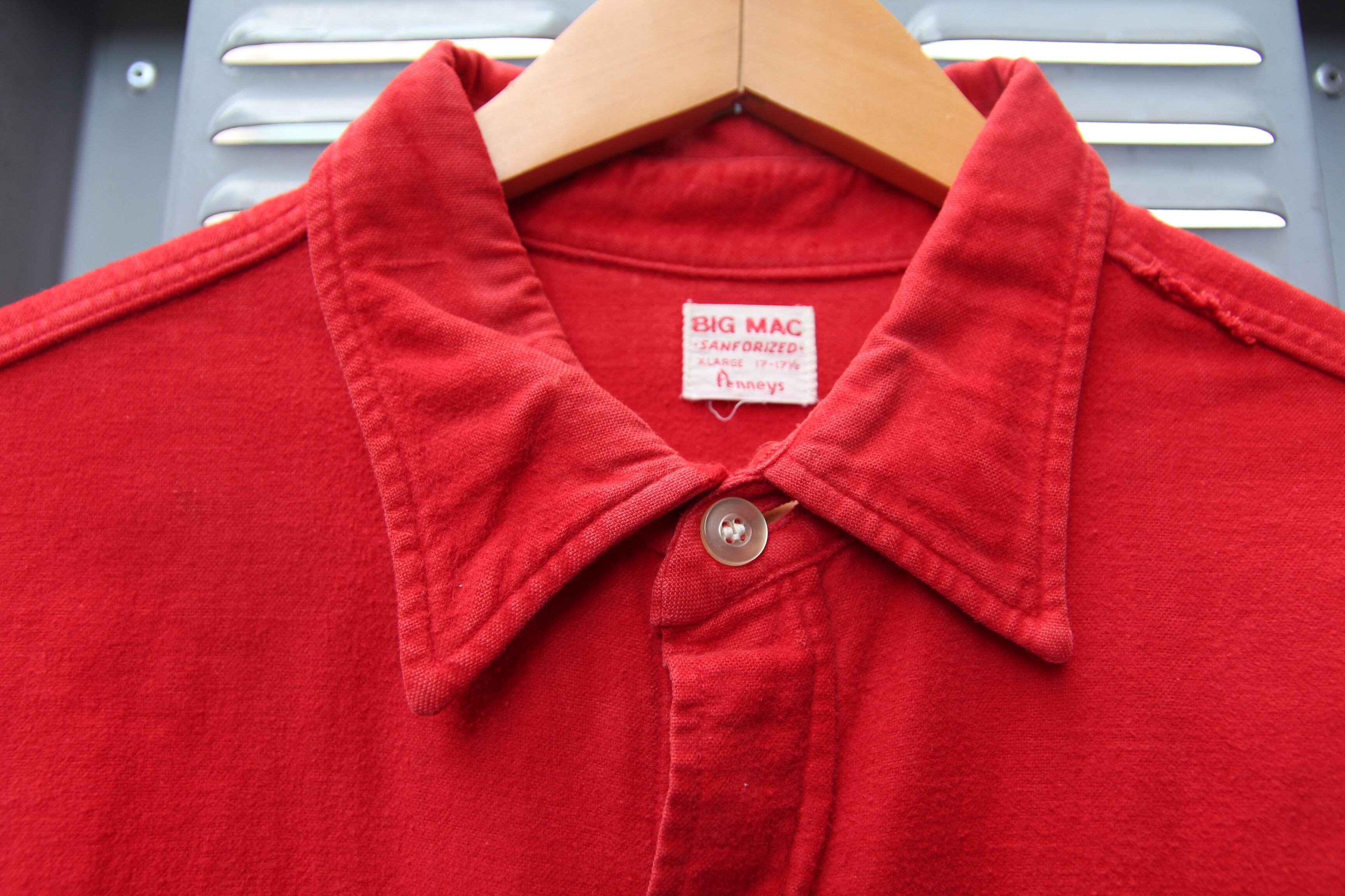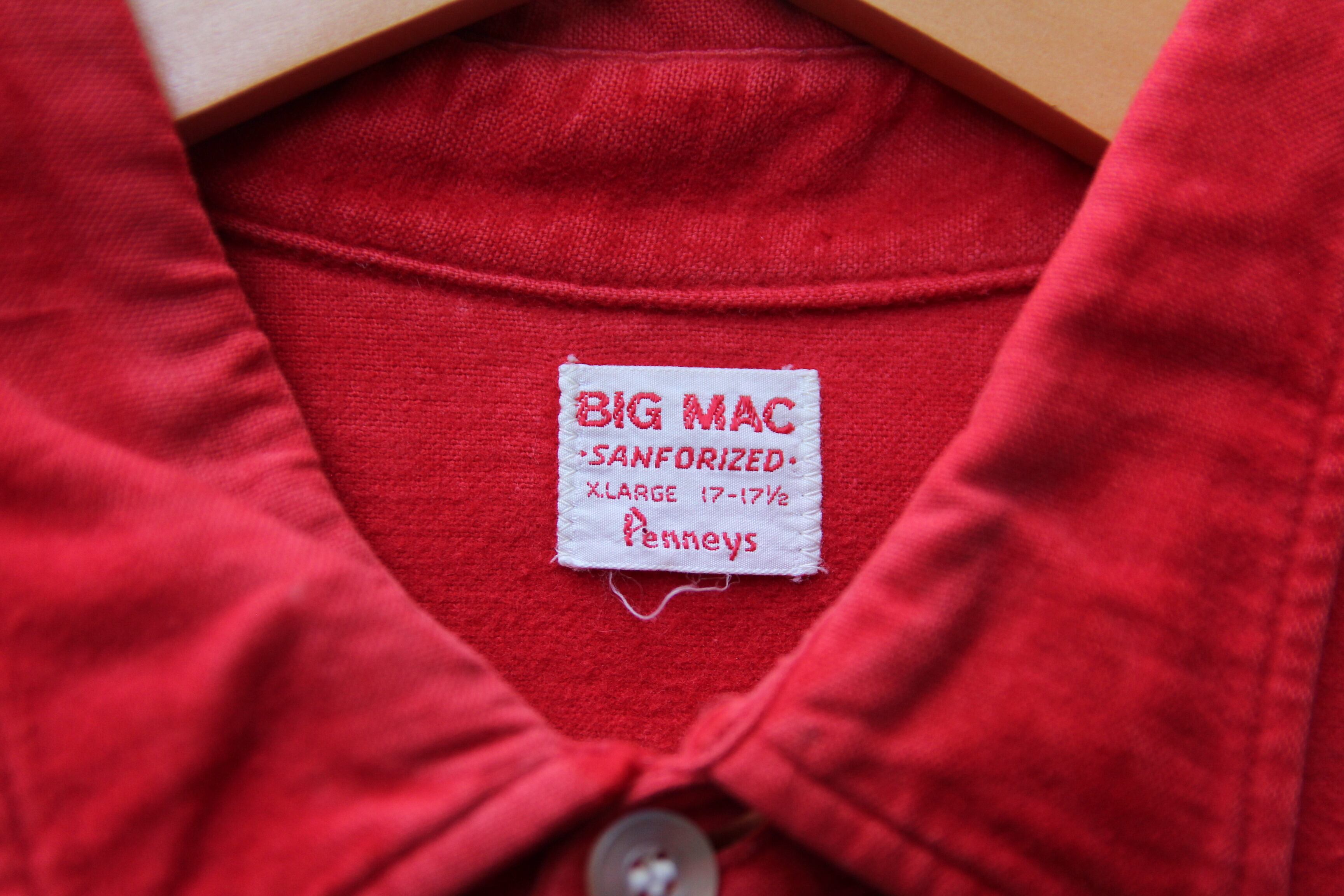 1960年代のBig Mac製フラネルシャツです。ビッグマックはJC Penney(ジェイシーペニー)」というストアから生まれたストアのオリジナルブランドです。ヴィンテージ好きの方や少し興味がある方は耳にしたことがあるブランドだと思います。こちらのアイテムはカラーは鮮やかな赤色です。シンプルなコーディネートも華やかにしてくれるアイテムです。60年代の物の中では状態も良い方だと思われます。サイズ感も17と日本でいうXLサイズですので羽織としてオーバーサイズ目に着用することも出来ます。ヴィンージがお好きな方、気になる方は是非この機会にご検討の程宜しくお願い致します。