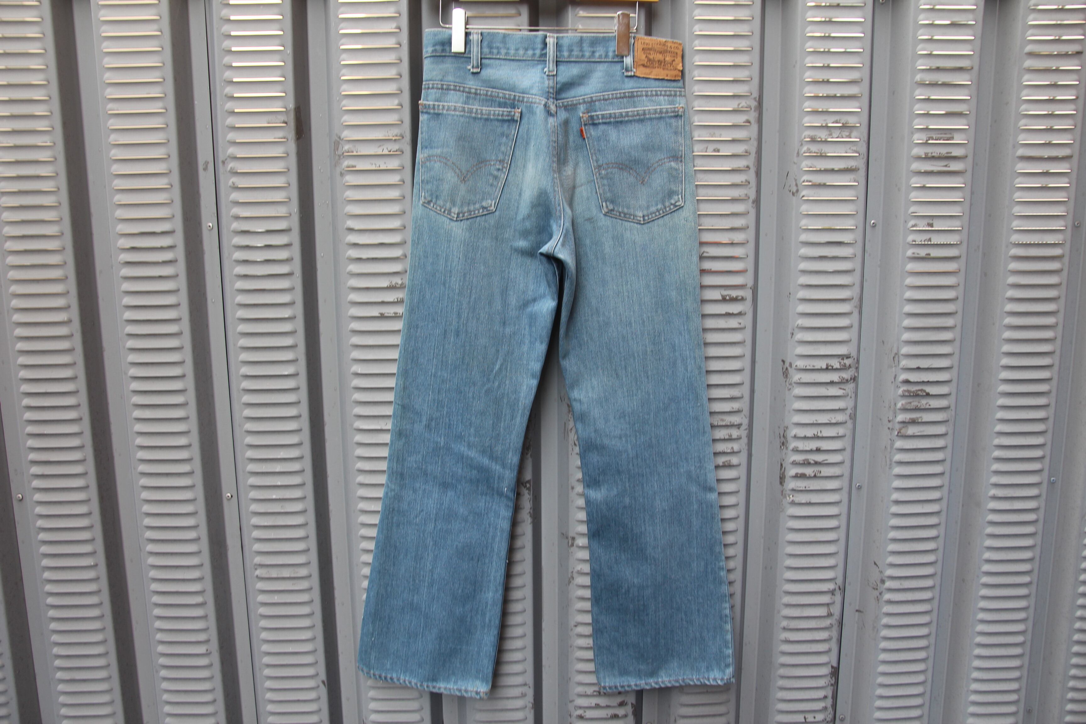 1970年代頃のLevis製デニムパンツ517なります。こちらのアイテムはブーツカットラインとなっており、膝から裾にかけて広がっていくシルエットが特徴であり、足のラインを綺麗に見せる事が出来ます。USA製で紙パッチもまだ綺麗な状態で残っております。ジップはTALON製となっております。カジュアルにもウェスタンスタイルにも合うアイテムです。ブーツなどと合わせたくなるアイテムです。517をお探しの方は多いと思われますので、お好きな方、気になる方は是非この機会にご検討の程宜しくお願い致します。