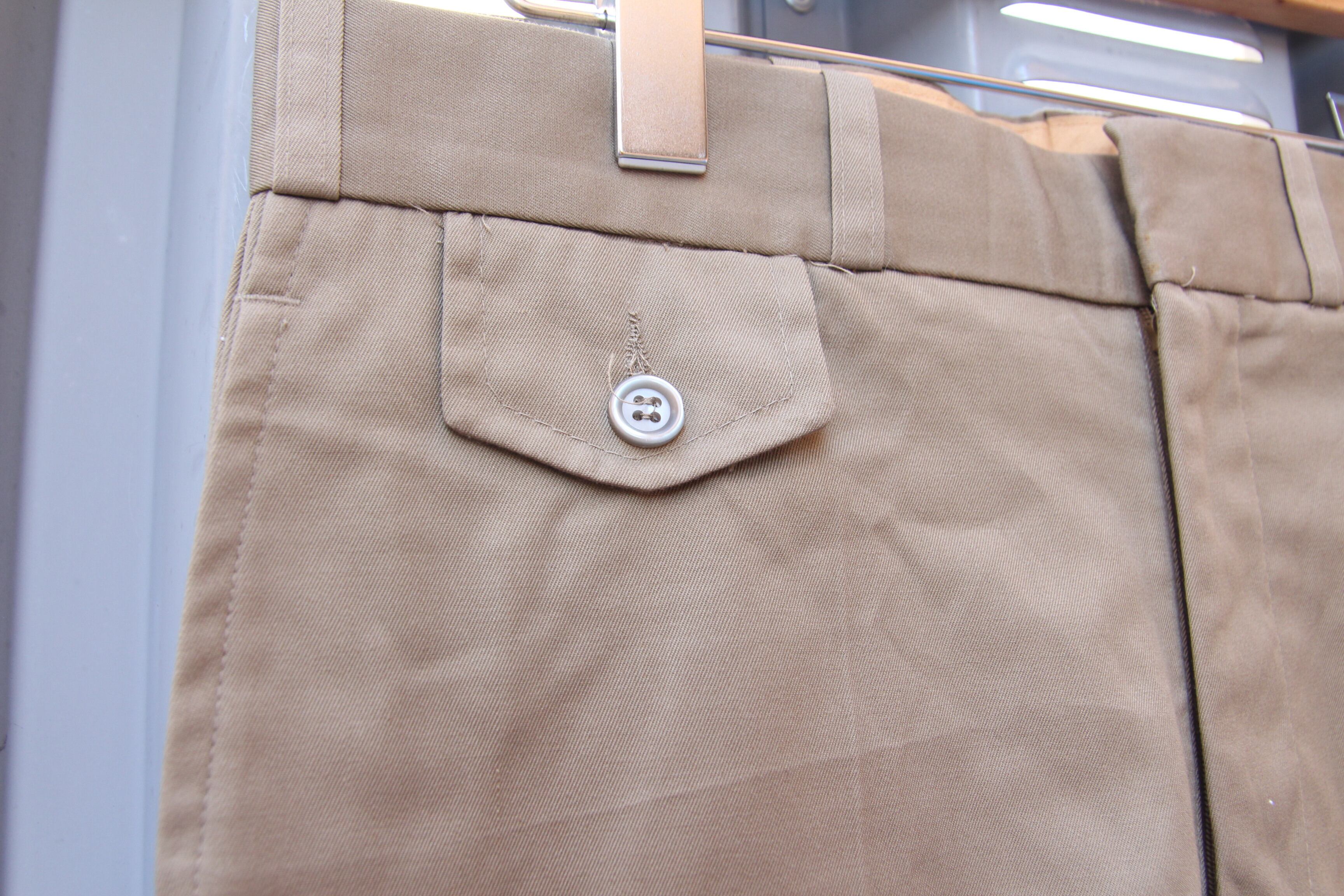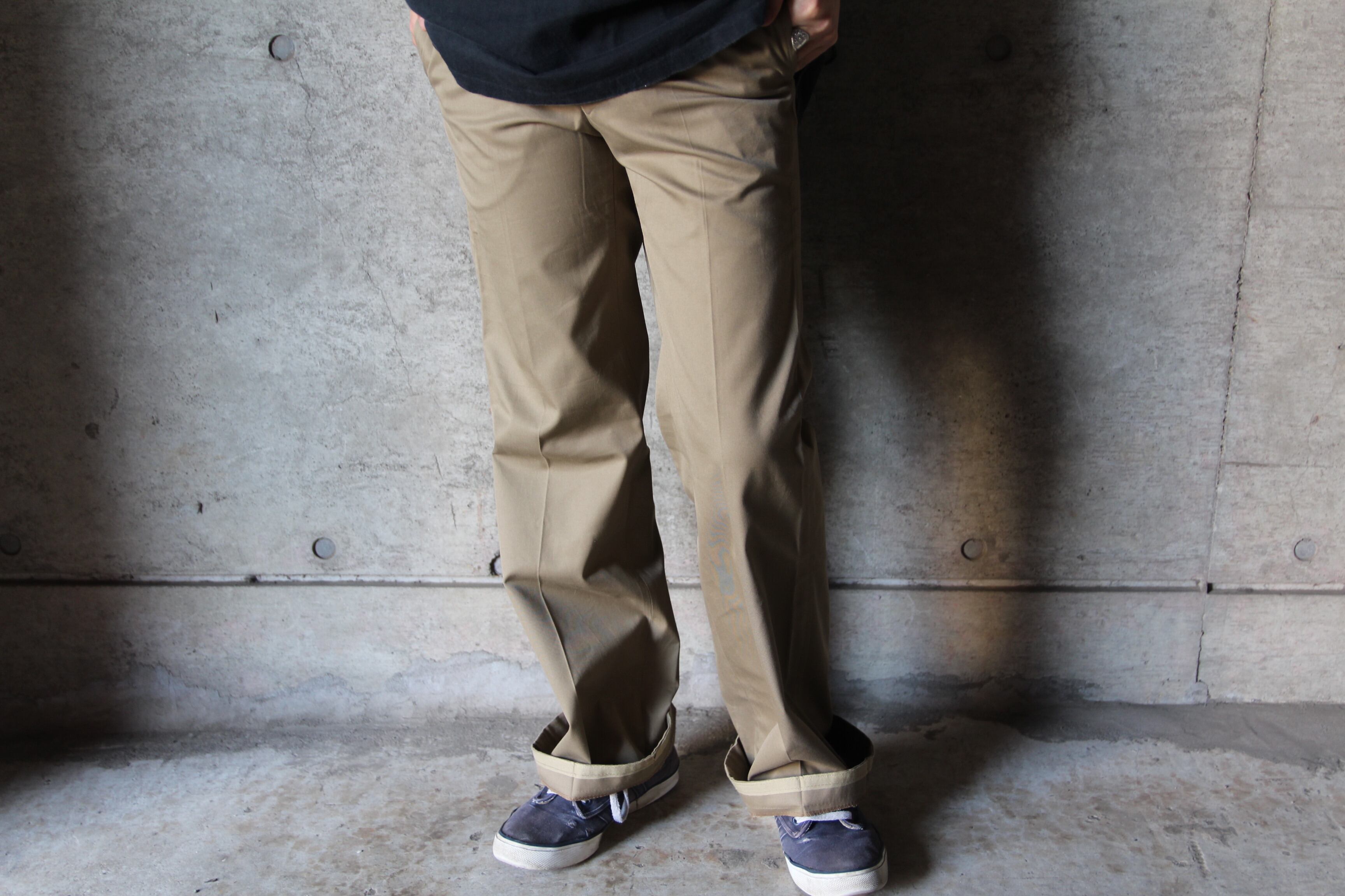 1980年代頃のMonty Glen製のコットンポリパンツです。ウェストは若干細めですが、レングスは若干長めです。1ロールする程度が丁度良いと思われます。シルエットは太目のストレートです。スケータースタイルや、ストリートスタイルにもよく合うアイテムです。フロントのポケットも特徴的な形をしております。このようなアイテムがお好きな方、お探しの方は是非この機会にご検討の程宜しくお願い致します。