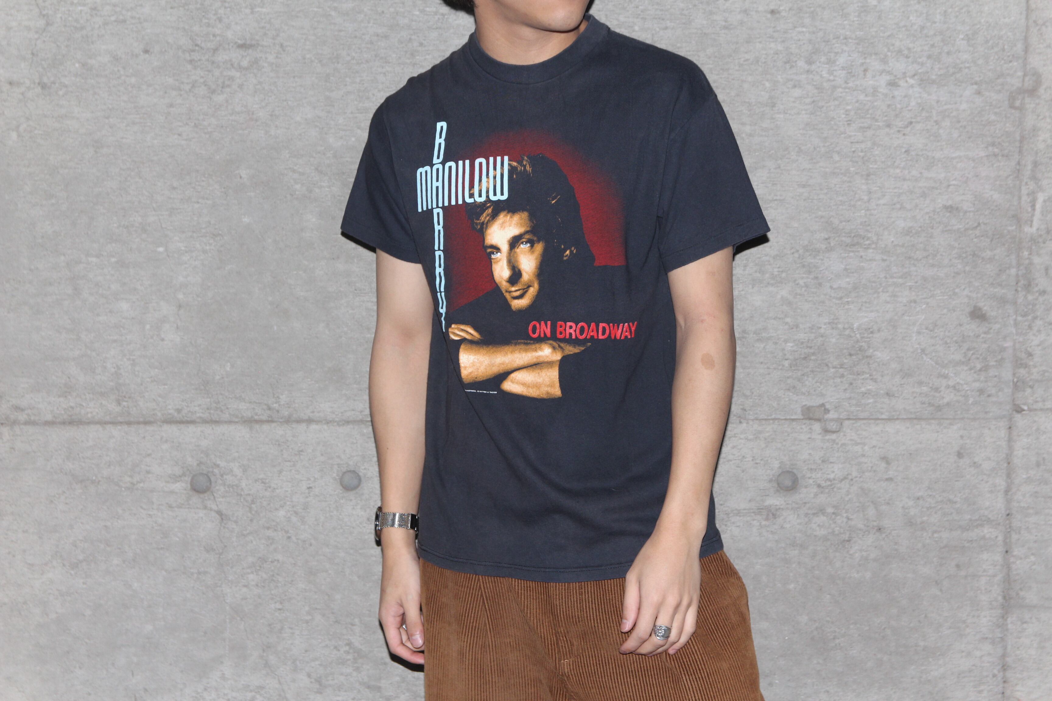 1980年代のHanes製のミュージックTシャツとなります。こちらはアメリカの歌手、作曲家、プロデューサーとしても有名であるバリーマニロウのミュージックTシャツです。こちらのアイテムはフロントには大きくマニロウのプリントがされており、バックにはツアーで周った地名がプリントされております。コピーライトも現存しており1989年製造であることが分かります。フロントにはOn Brosdwayと書かれており、この翌年に「Live On Broadway」というアルバムが発売されます。現在でも世界中にファンがいるアーティストですのでお好きな方はもちろん、気になる方も是非この機会にご検討の程宜しくお願い致します。