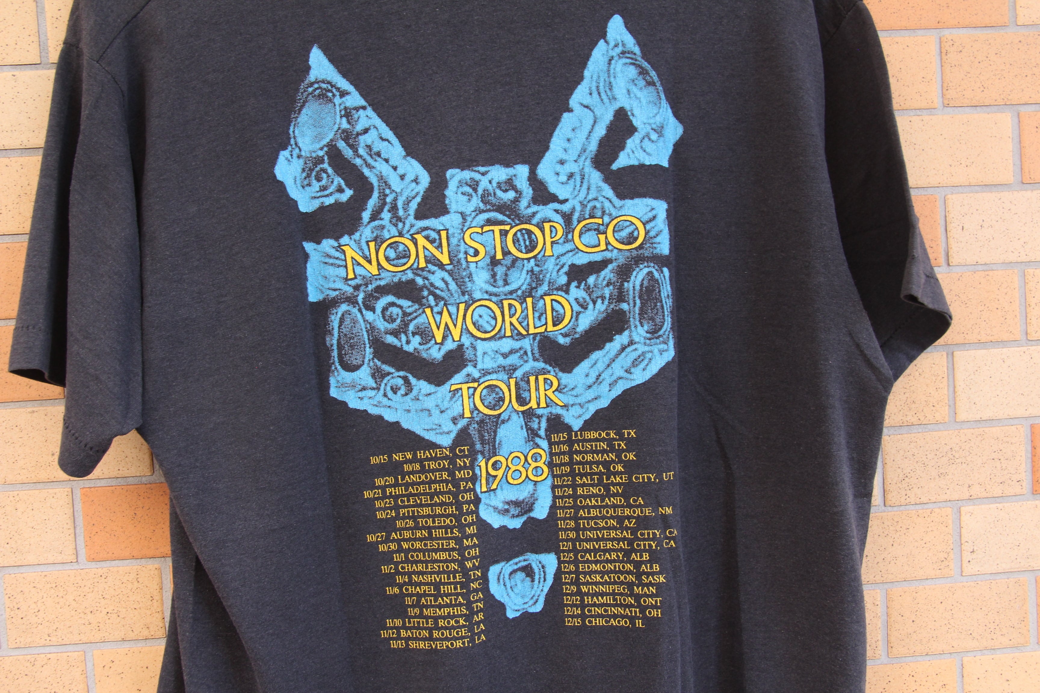 80年代のScreen Stars製ミュージックTシャツとなります。プリントはイギリスロンドンにて結成された偉大なバンドの1つレッド・ツェッペリンのヴォーカリストとして知られているロバート・プラントの88年ソロワールドツアー時の物となります。80年にドラムのボーナムが死亡しバンドが解散し、82年頃からソロ活動が開始されております。84年には日本公演もそして2014年のサマー・ソニックにも出演を果たしております。金髪長髪のイメージが強く、ロック界のセックスシンボルとも呼ばれておりました。フロントには本人とツアー名がプリントされ、バックにツアー名が入ります。素材はコットンとポリエスターの混紡となります。サイズも近年人気のLサイズとなります。ツェッペリン好きは勿論、プリントも非常に良いので是非この機会にご検討の程宜しくお願いします。