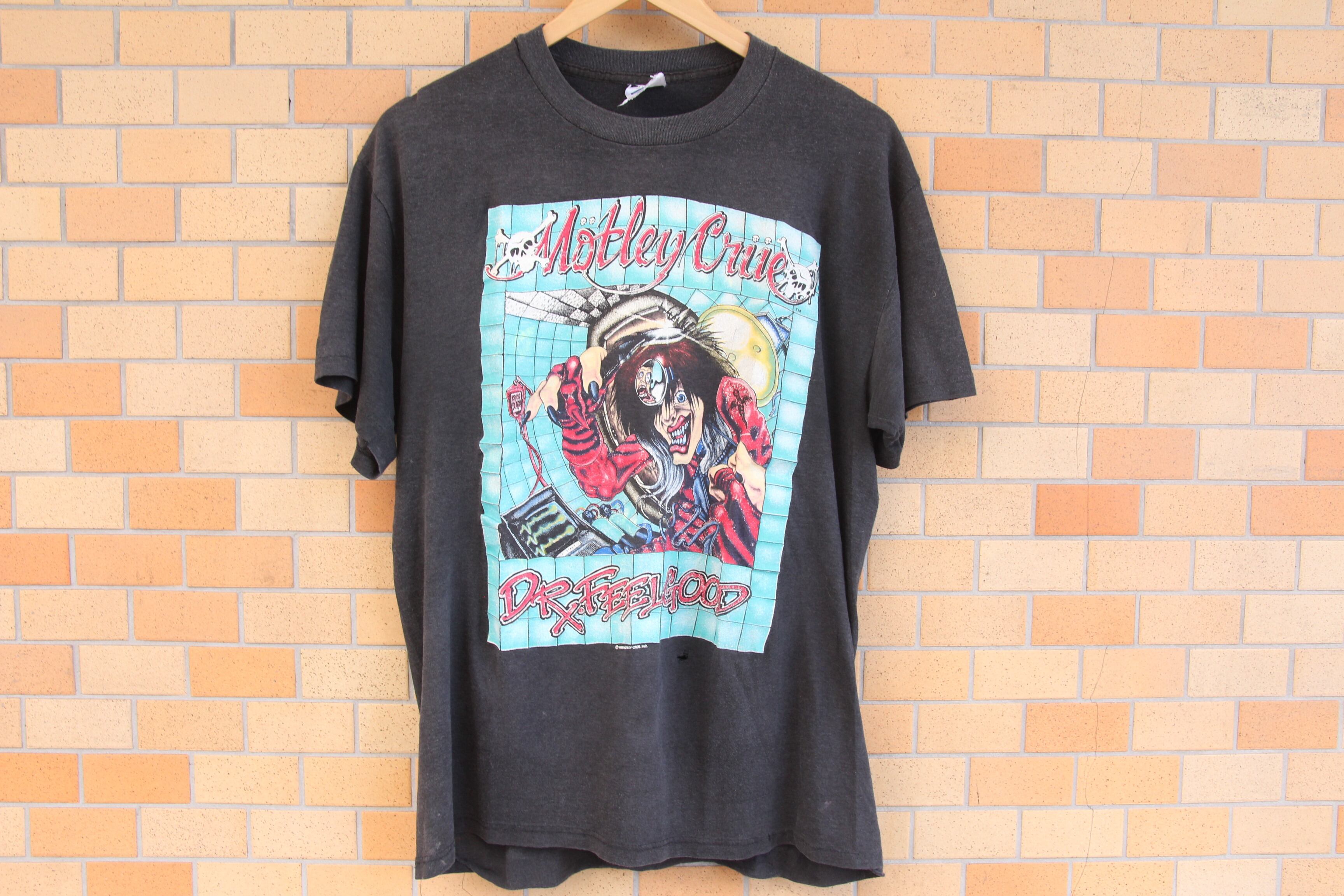 1980年代頃のSpring Ford製のミュージックTシャツとなります。プリントは1981年にUSAカリフォルニア州にて結成されたヘヴィメタルバンドMotley Crueの1989年リリースのアルバム「Dr,Feelgood」時に生産されたアルバムかと推測されます。フロントにはMotleyらしいパンチの効いたプリントにバックは英字が入ります。フロントプリント下部には1989年のコピーライトが入ります。サイズ表記はXLですが、コットンとポリエスターの混紡素材ですので多少小さ目な作りになるかと思います。使用感や生地よれ、汚れ、ダメージ等が見られますが、これも大変雰囲気が出ておりますので雰囲気重視がお好きな方は是非この機会にご検討の程宜しくお願いします。