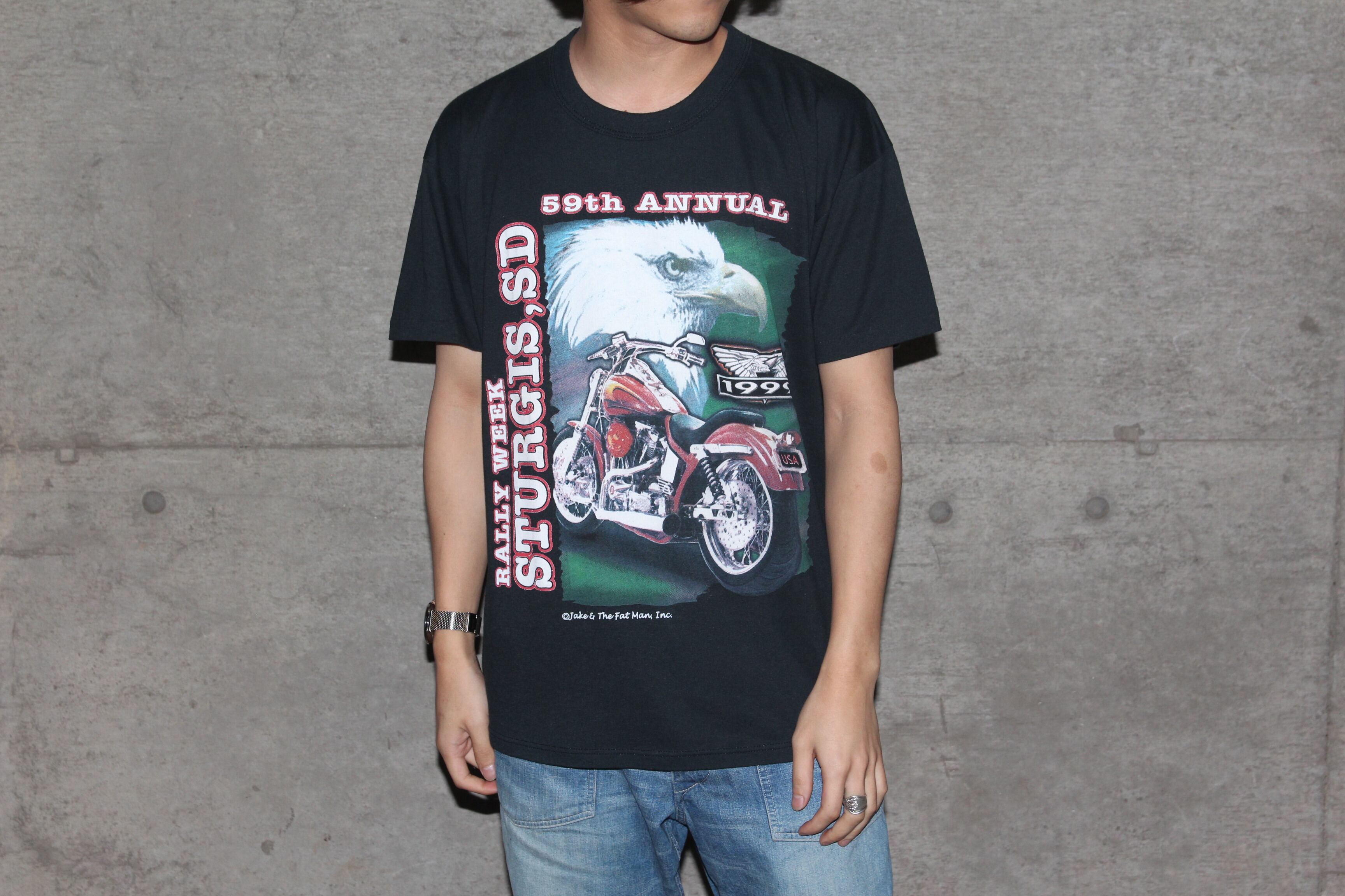 1990年代のRussell製のモーターサイクルTシャツです。こちらのアイテムはアメリカ、サウスダコタ州のスタージスで年に一度行われるモーターサイクルラリーの59回目を記念して作られたアイテムです。フロントのプリントも豪華ですが、このアイテムはバックプリントが格好良いアイテムだと思います。サイズもLサイズと男女ともに着用頂けるサイズです。バイクがお好きな方や、デザインがお好きな方、気になる方は是非この機会にご検討の程宜しくお願い致します。
