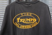 1990年代頃のHanes製のモーターサイクルTシャツです。こちらはイギリス最大のオートバイメーカーである「TRIUMPH」のTシャツです。フロント、バック共にシンプルなプリントとなっておりますが、黒に黄色のプリントと配色の良いアイテムです。バイクがお好きな方であれば知っているメーカーではないでしょうか。ボディはコットン100%でUSA製です。バイクがお好きな方や、デザインが気に入った方は是非この機会にご検討の程宜しくお願い致します。