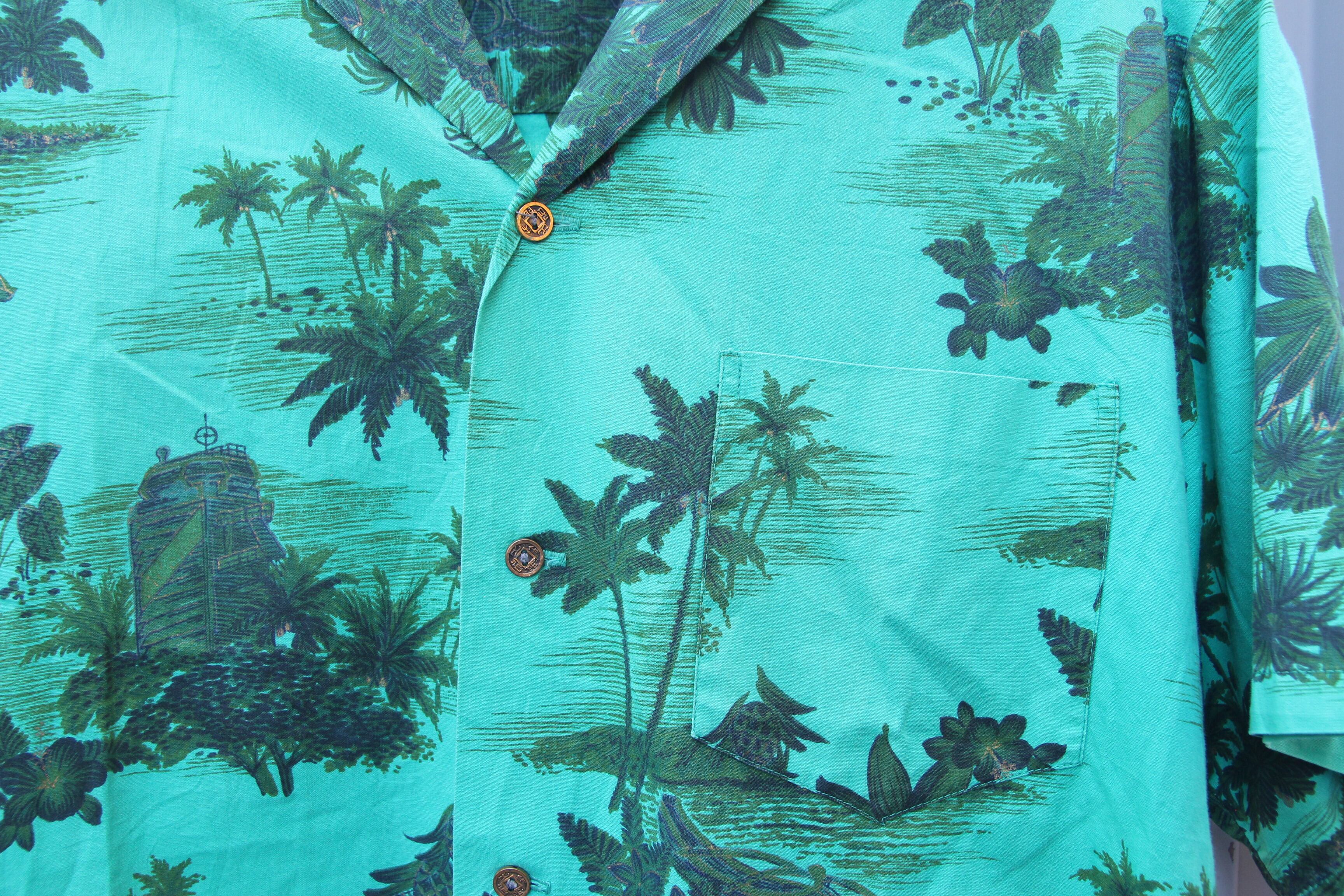 1970年代のヴィンテージコットンハワイアンシャツです。ブランドはマイナーブランドにて詳細は分かりませんが、細かな造りなどヴィンテージらしさが出ているアイテムです。ボタンの造りなどは細かく目を引かれるものがございます。色も鮮やかなグリーンでコーディネート全体を爽やかな印象にしてくれます。夏には是非一着持っていたいアイテムですね。この手のアイテムがお好きな方、気になる方は是非この機会にご検討の程宜しくお願い致します。
