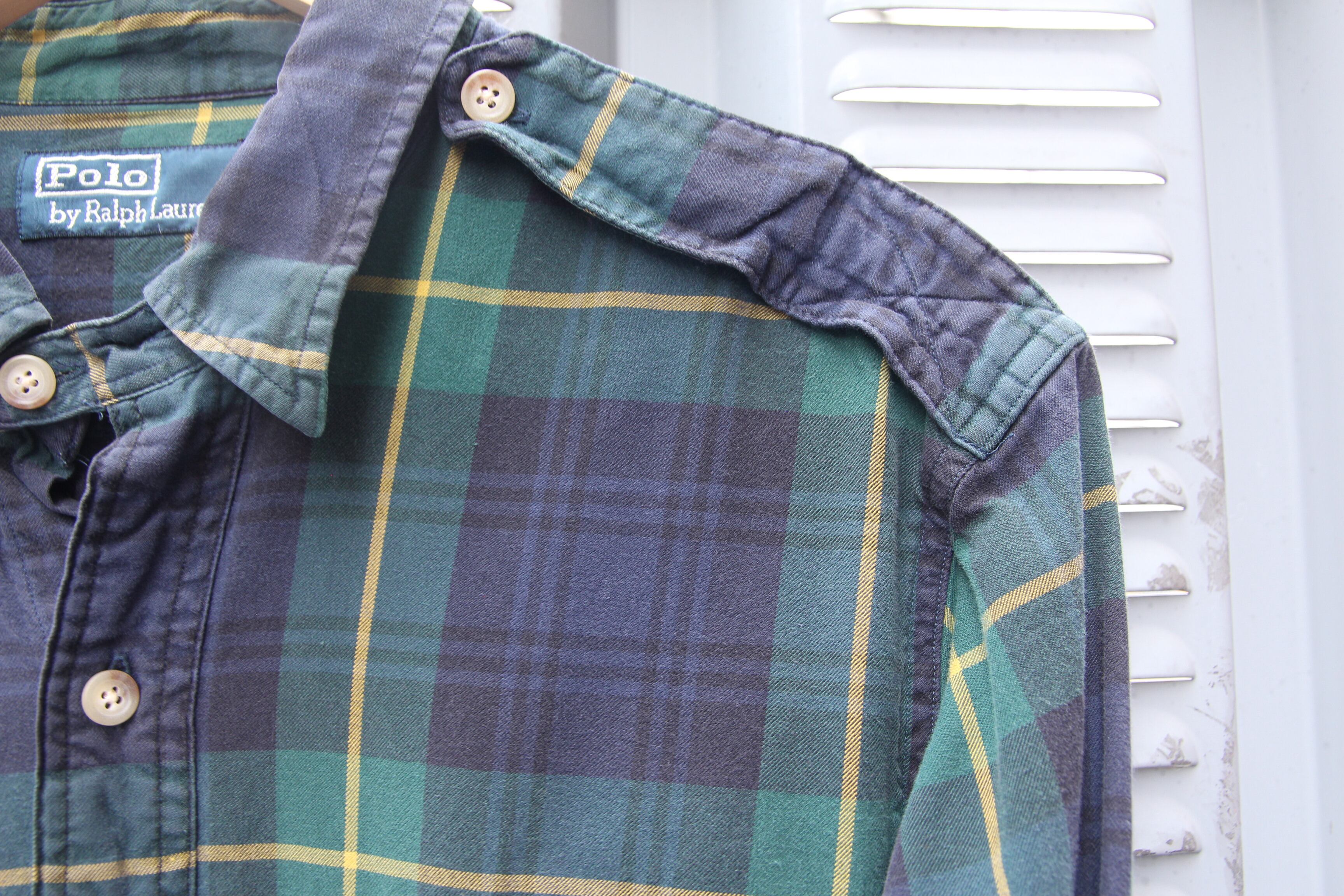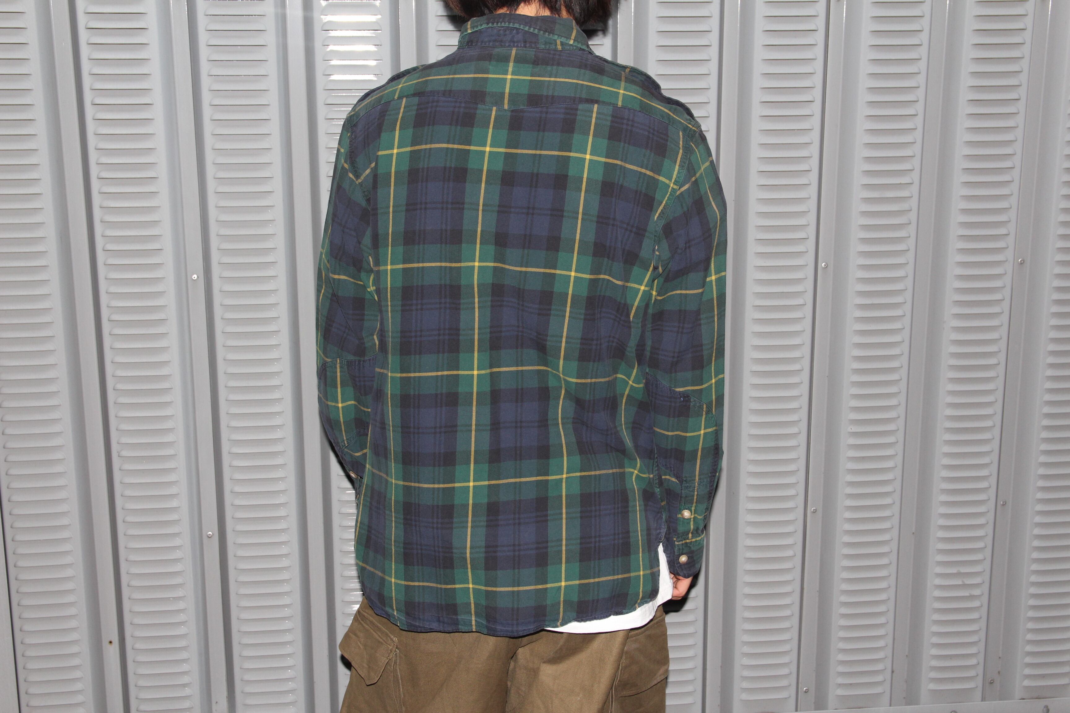 1990年代頃から2000年代頃のRalph Lauren製のコットンシャツとなります。こちらのアイテムはグリーンとネイビーのチェックシャツです。チンストラップもついております。フロントには胸ポケットが二つ付いておりボタン留めされております。全体的に落ち着いた印象を与えます。様々なコーディネートに合わせやすいアイテムです。オールシーズン着用して頂けるアイテムですので、この手のアイテムがお好きな方、気になる方は是非この機会にご検討の程宜しくお願い致します。