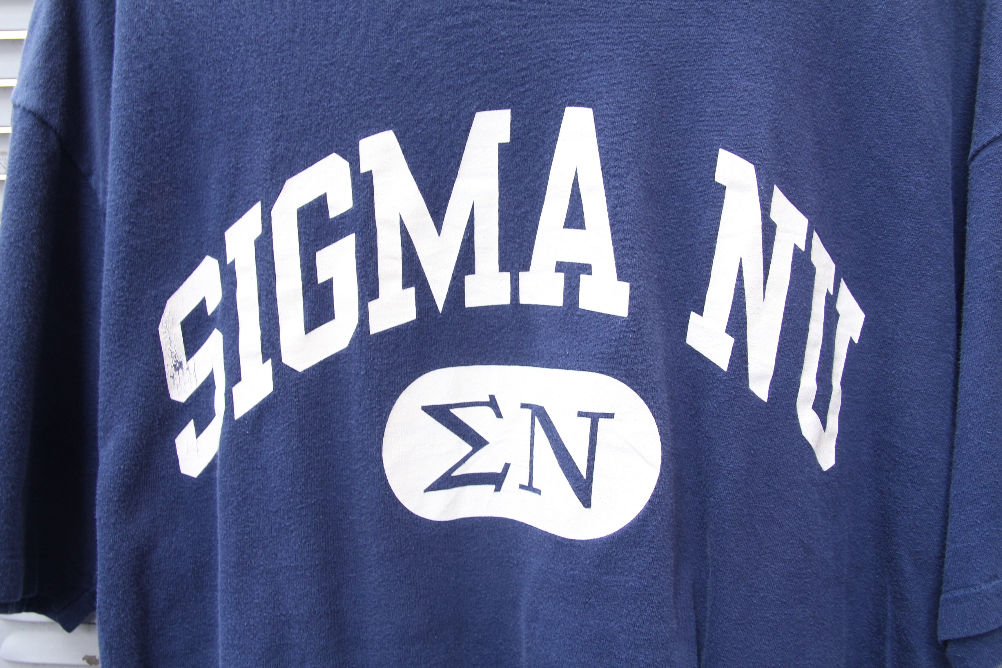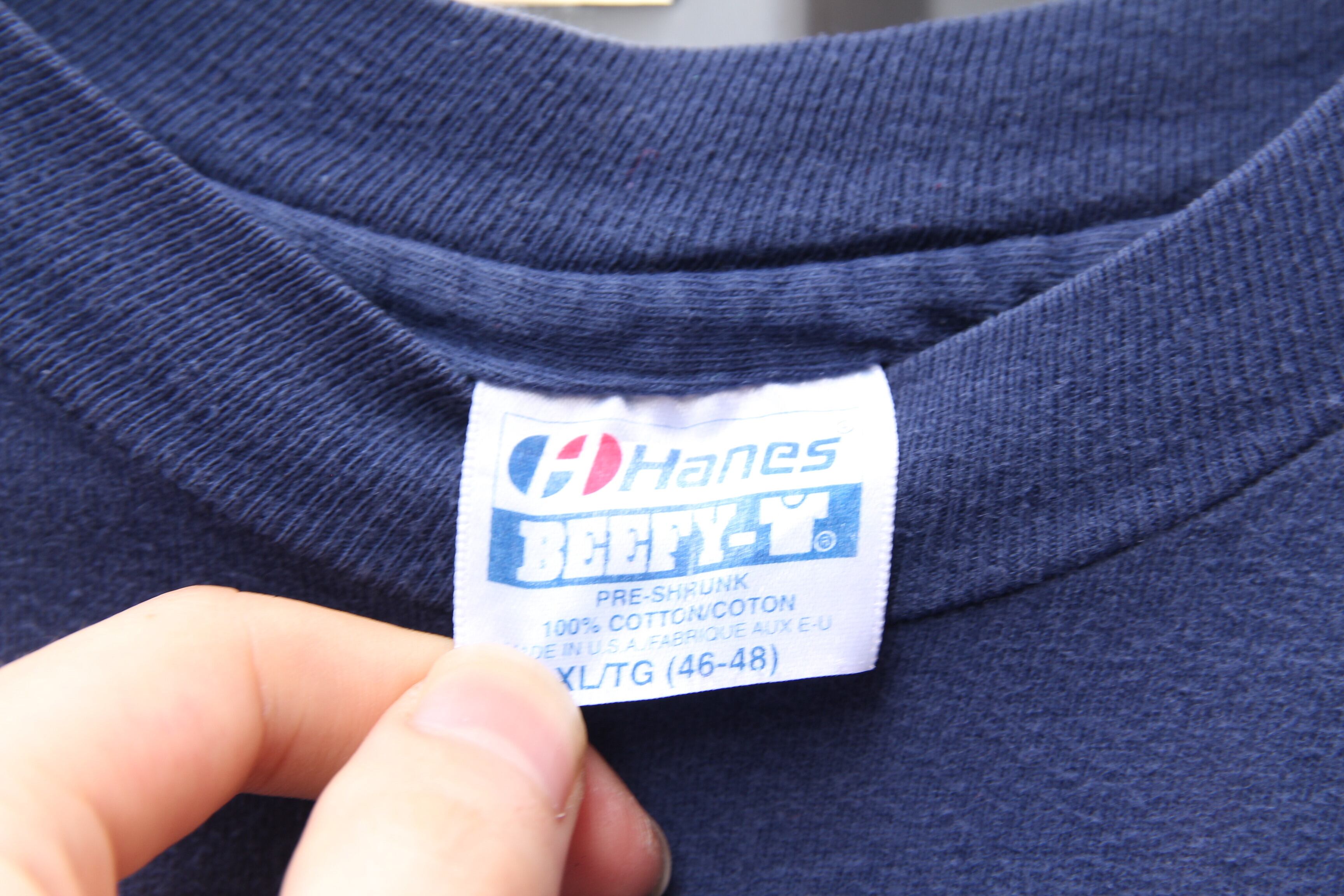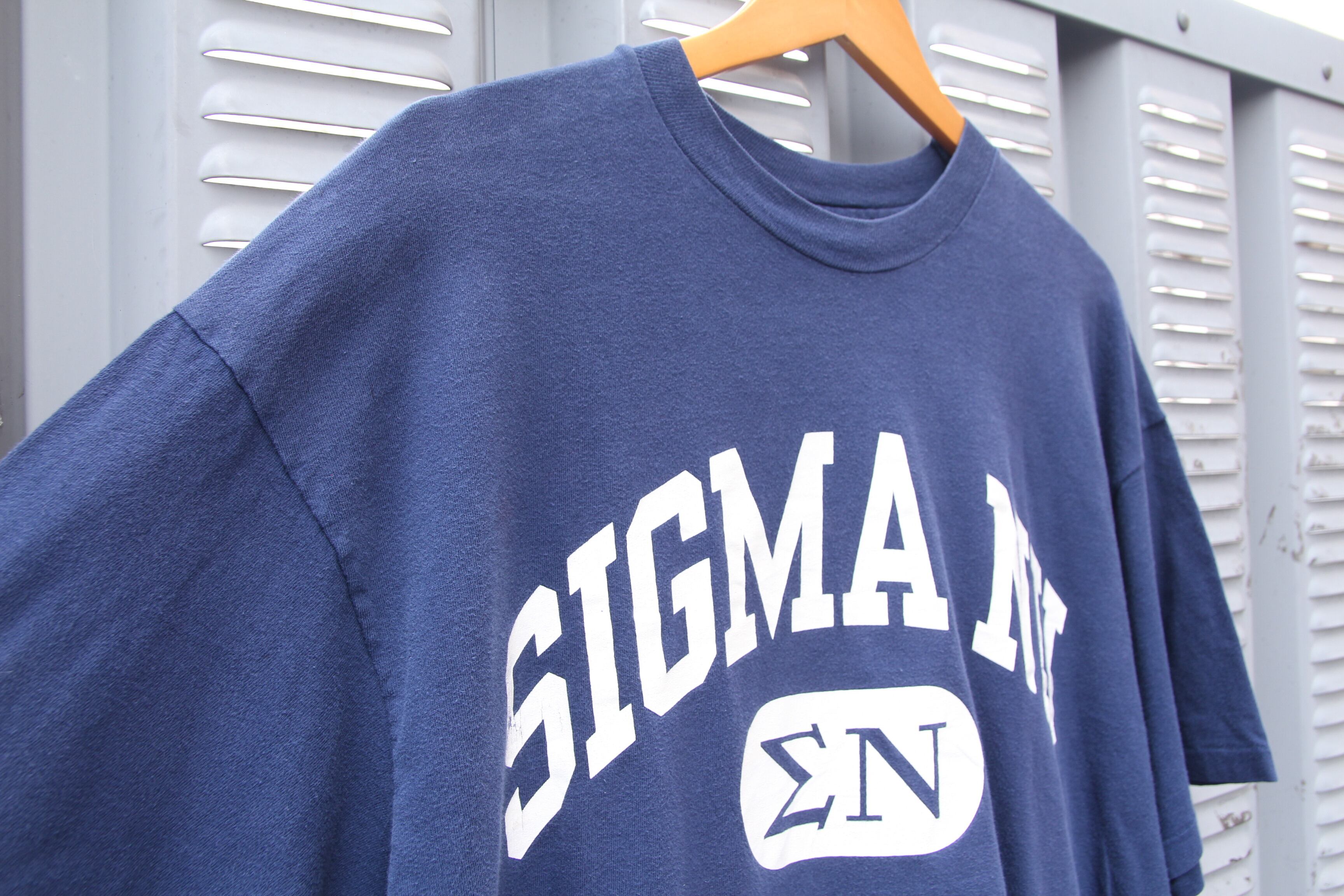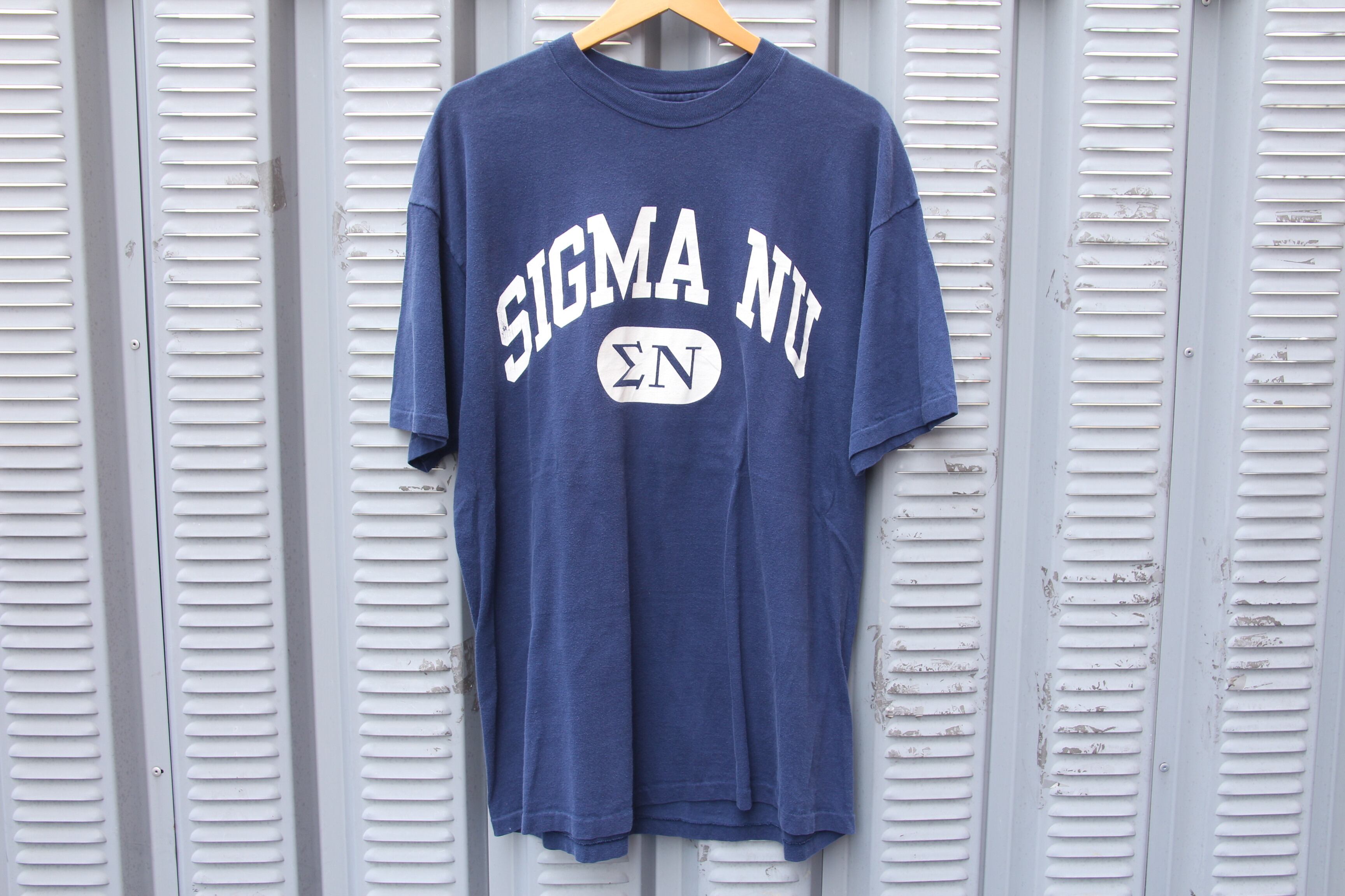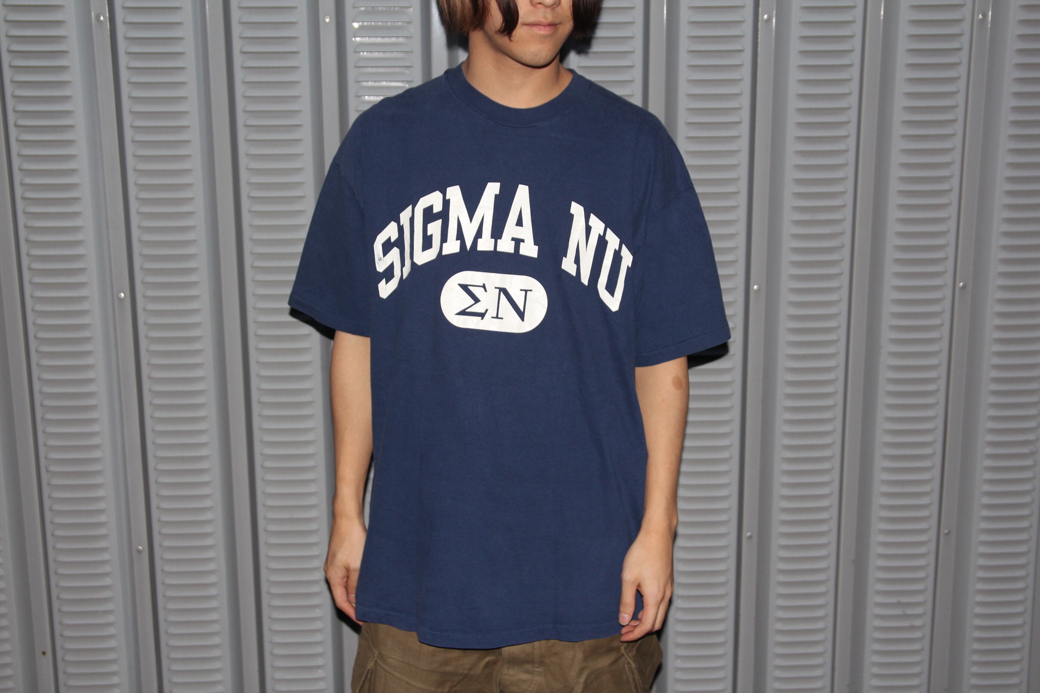 1980年代頃のHanes製プリントTシャツになります。ボディはコットン100%でアメリカ製。袖、裾ともにシングルステッチ。配色は合わせやすいネイビーでフロントには大きくSigma Nuのカレッジプリントが入ります。シンプルで非常に汎用性の高いアイテムとなっております。サイズはゴールデンサイズのXLサイズなので、幅広い方に着ていただけるかと思います。オールドのプリントTシャツは人気になってきており、市場では近年高騰してきております。Hanesボディがお好きな方は勿論、この手の物をお探しだった方はこの機会に是非ご検討の程宜しくお願い致します。